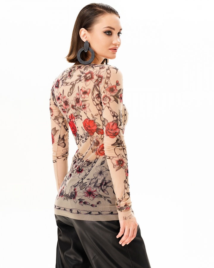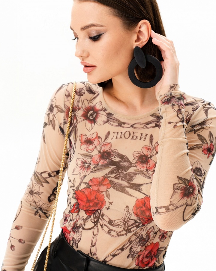 Лонгслив женский из сетки с принтом-тренд Осень-Зима 2023-2024.  Его можно надевать под платье, жакет, кардиган, жилет или даже футболку.