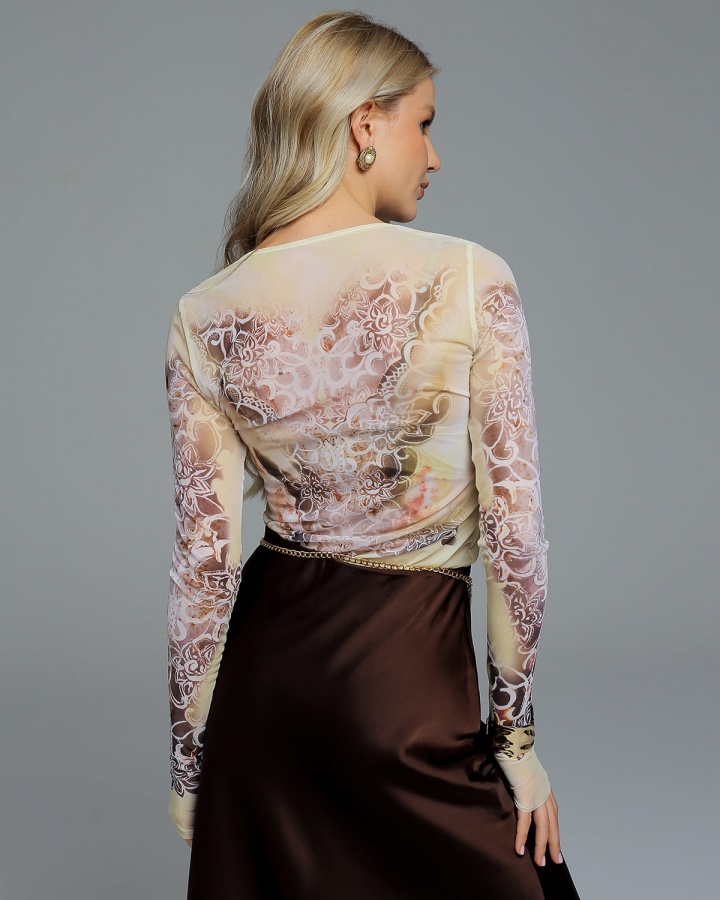 Лонгслив женский из сетки с принтом-тренд 2024.  Его можно надевать под платье, жакет, кардиган, жилет или даже футболку.