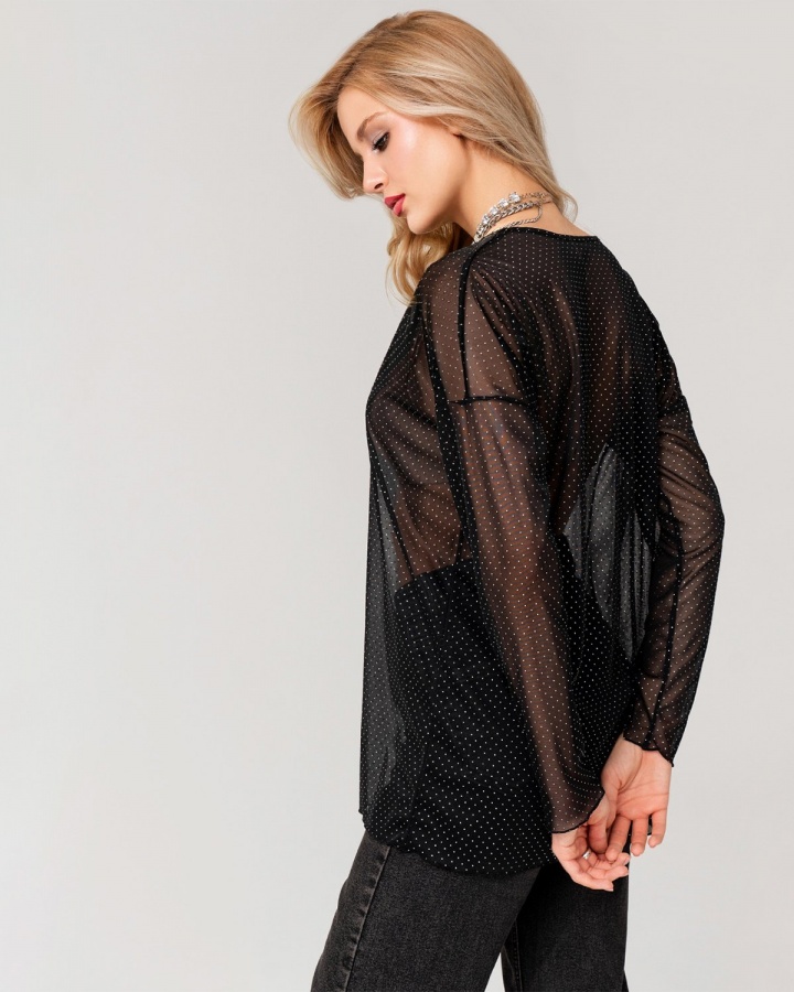 Лонгслив женский из сетки со стразами - трендовый элемент гардероба для создания интересных многослойных образов. Блеск придаёт лонгсливу свободного кроя особую загадочность. Кофта из сеточки очень приятна для тела. Он как будто обволакивает кожу. Вечерний топ из сетки - идеальное решение для тех, кто ищет стиль. Лонгслив идет удлиненный, учитывайте это при заказе. Эта прекрасная кофта доступна в различных размерах. Невероятно удобный и он поможет вам чувствовать себя комфортно в любое время года. Наш лонгслив сочетает в себе практичность и элегантность. Этот стильный элемент добавляет офисной одежде особую изюминку и привлекательность. Кофта в сетку имеет удлиненные рукава, которые великолепно подчеркнут вашу женственность. Он прекрасно дополнит ваш вечерний образ и создаст впечатление элегантности и стиля. Ощутите комфорт и получите массу комплиментов, надевая эту прекрасную вещь! Стирка в стиральной машине или руками в щадящем режиме (max t, °C – не более 30).