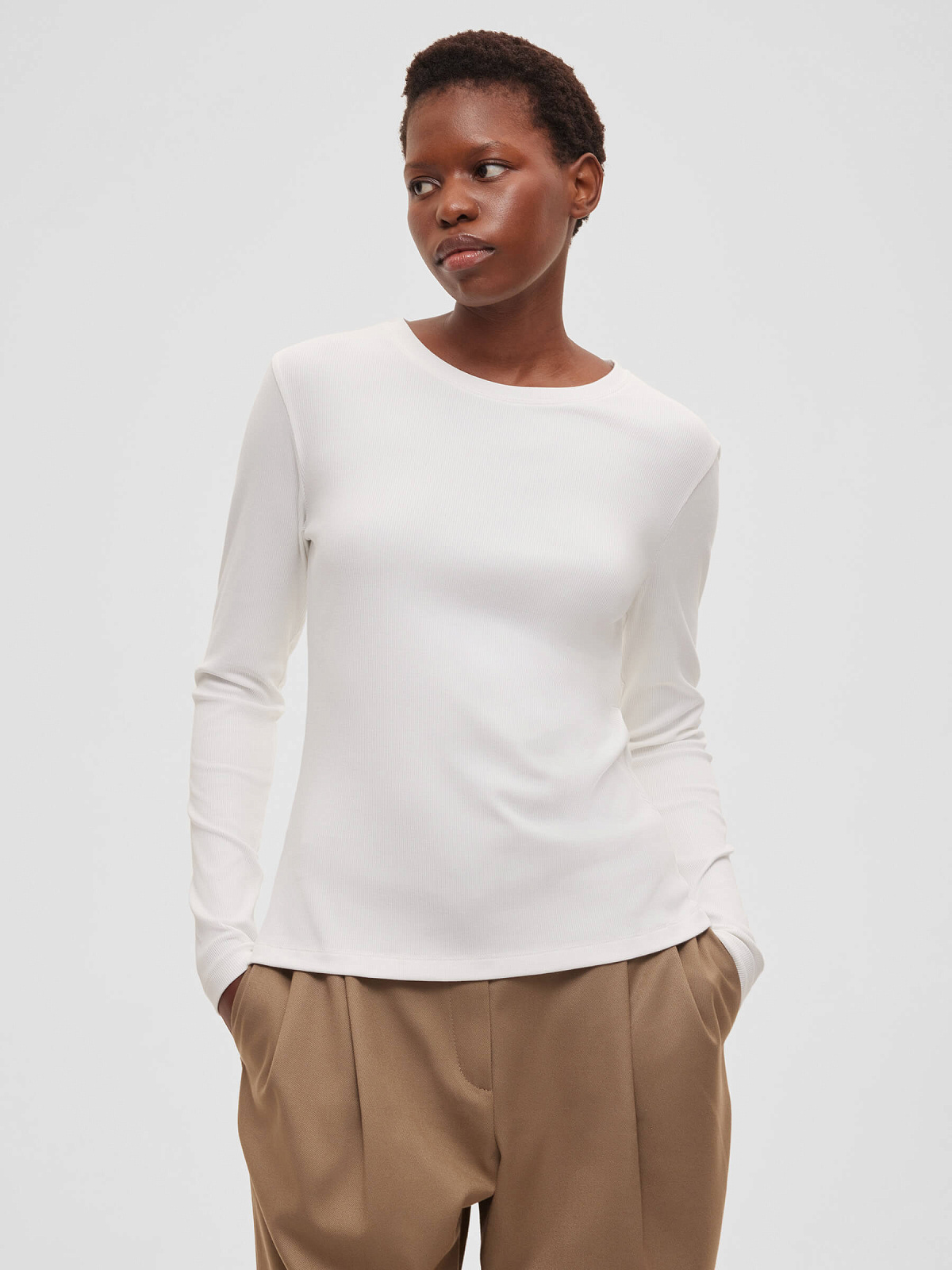 РОЗНИЧНАЯ ЦЕНА 4350руб. Лонгслив прилегающего кроя из трикотажа в рубчик
