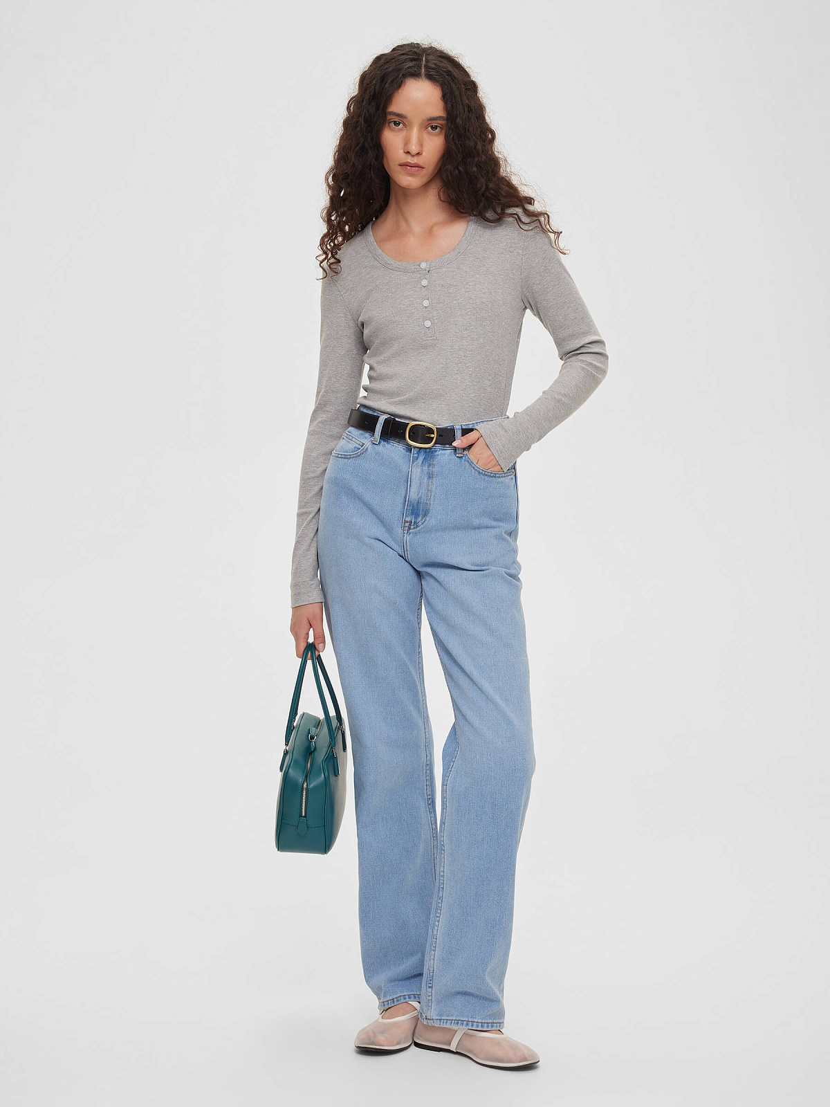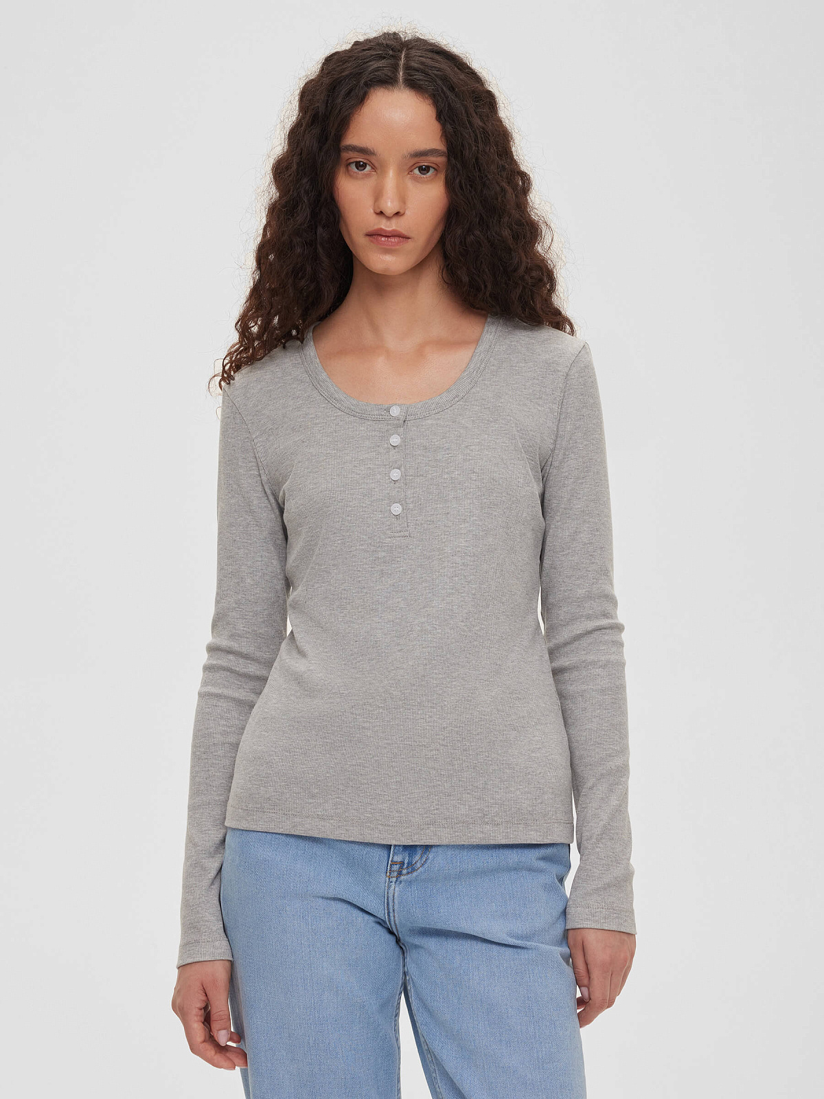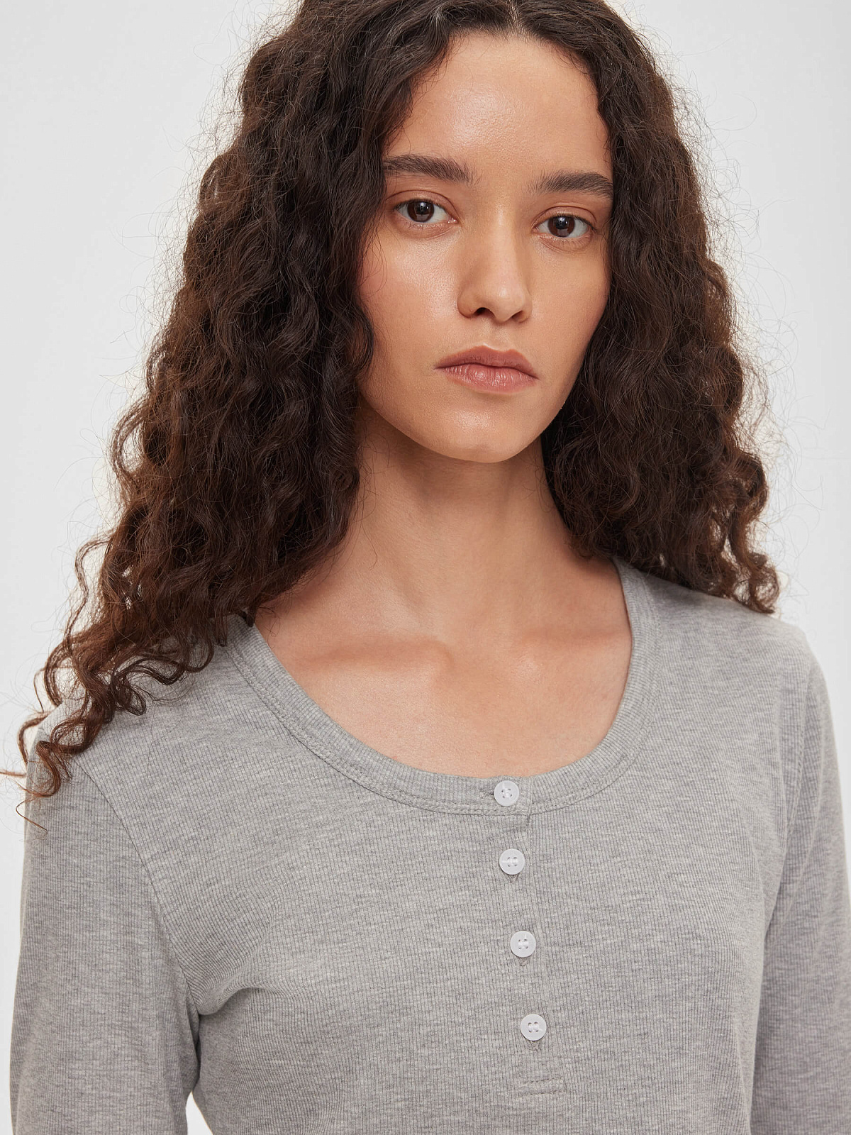 Лонгслив из трикотажа на пуговицах 0155, серый