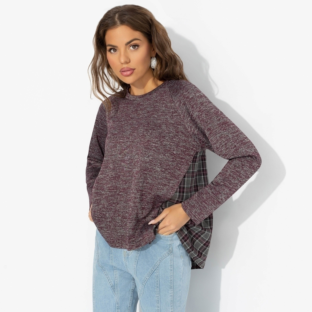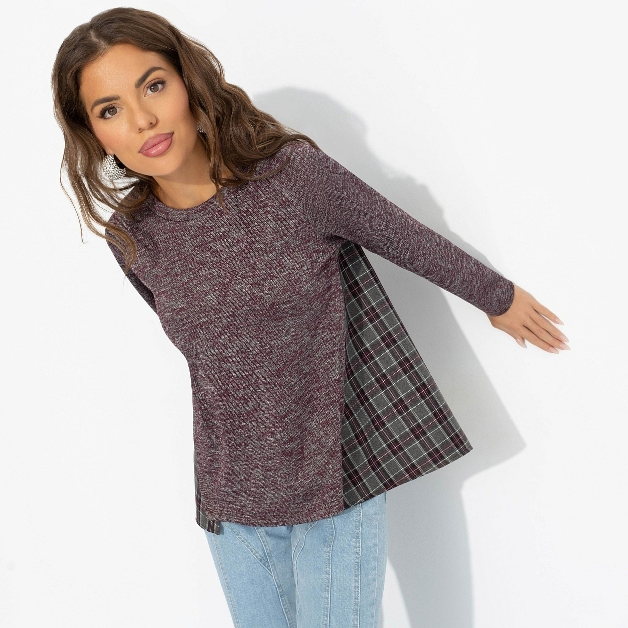 Состав: Трикотаж «меланж», костюмная ткань клетка (65% п/э, 30% ангора, 5% спандекс)