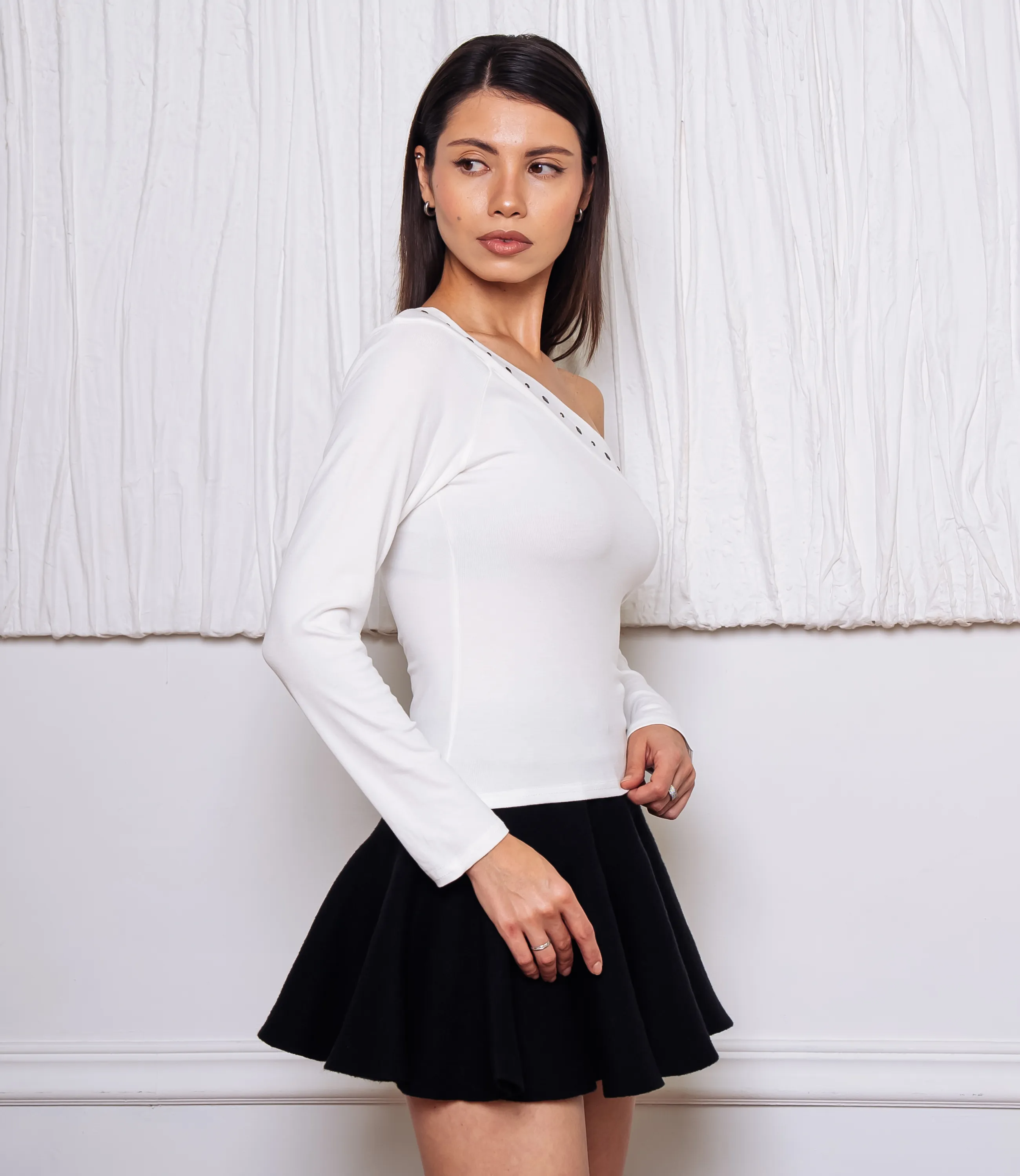 Лонгслив – это одежда, которая подчеркивает уникальность каждой женщины. Лонгслив прилегающего силуэта, с асимметричным открытым плечом: левая линия плеча украшена продолговатым вырезом, оголяющим всю левую ключицу и плечо, правая сторона имеет классический длинный рукав, плотно облегающий руку до запястья. Горловина косая, обрамлённая узкой планкой с рядом небольших декоративных металлических люверсов, расположенных по диагонали от правого плеча к центру переда, что создаёт графичный акцент. Для изготовления использована 65% хлопок, 30% полиэстер, 5% эластан, которая характеризуется отличным качеством. Даже после многих стирок лонгслив не потеряет изначальной привлекательности. Даже после многих стирок лонгслив не потеряет изначальной привлекательности. Вы обязательно будете её носить с большим удовольствием. Обратите внимание на цвет. Он является насыщенным и полностью соответствует фотографии на сайте. Чтобы вы были уверены в размере, мы предоставили на сайте таблицу. Воспользовавшись ею, вы сможете сами сделать мерки и убедиться. Установленная нами цена является приемлемой. Не откажите себе в удовольствии быть элегантной и стильной! Рост модели 164 см., 83-61-89.
