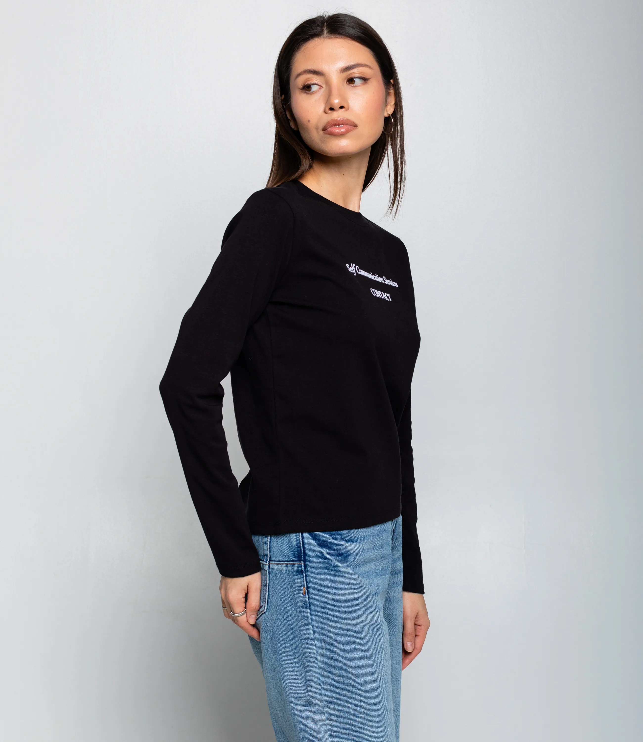 Лонгслив – это одежда, которая подчеркивает уникальность каждой женщины. Горловина лонгслива круглая, обработана узкой подгибной бейкой для сохранения формы и комфорта при носке. Рукава длинные, без дополнительного декора, с аккуратной простой подгибкой на манжетах; плечевые швы расположены в стандартной позиции, придавая изделию привычную линию плеча. Ткань гладкая, тонкая и мягкая, с лёгкой эластичностью, обеспечивающей свободу движений и комфорт на теле; структура материала однотонная и однородная, без фактурных выпуклостей. На передней части груди расположен простой печатный логотип из двух строк текстовой информации, выполненный контрастной печатью небольшого размера и ровными аккуратными буквами. Швы ровные, минимальные декоративные элементы, общий стиль сдержанный повседневный, подходящий для многослойных образов или самостоятельного ношения. Для изготовления использована 95% хлопок, 5% спандекс, которая характеризуется отличным качеством. Даже после многих стирок лонгслив не потеряет изначальной привлекательности. Даже после многих стирок лонгслив не потеряет изначальной привлекательности. Вы обязательно будете её носить с большим удовольствием. Обратите внимание на цвет. Он является насыщенным и полностью соответствует фотографии на сайте. Чтобы вы были уверены в размере, мы предоставили на сайте таблицу. Воспользовавшись ею, вы сможете сами сделать мерки и убедиться. Установленная нами цена является приемлемой. Не откажите себе в удовольствии быть элегантной и стильной! Рост модели 164 см., 83-61-89. Вы можете заказать онлайн презентацию на интересующие Вас модели. Наши менеджеры свяжутся с Вами и проведут индивидуальную видеотрансляцию, помогут составить заказ и ответят на Ваши вопросы.