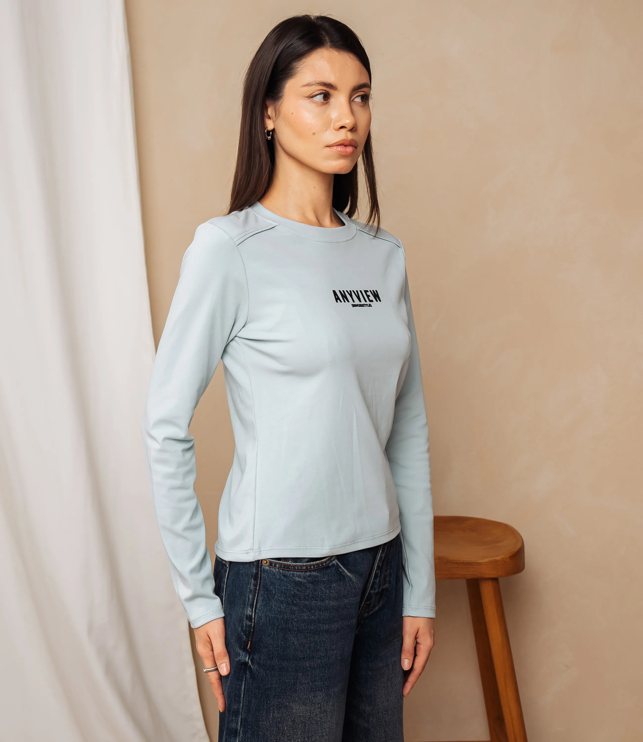 Лонгслив #КТ9072, голубой
