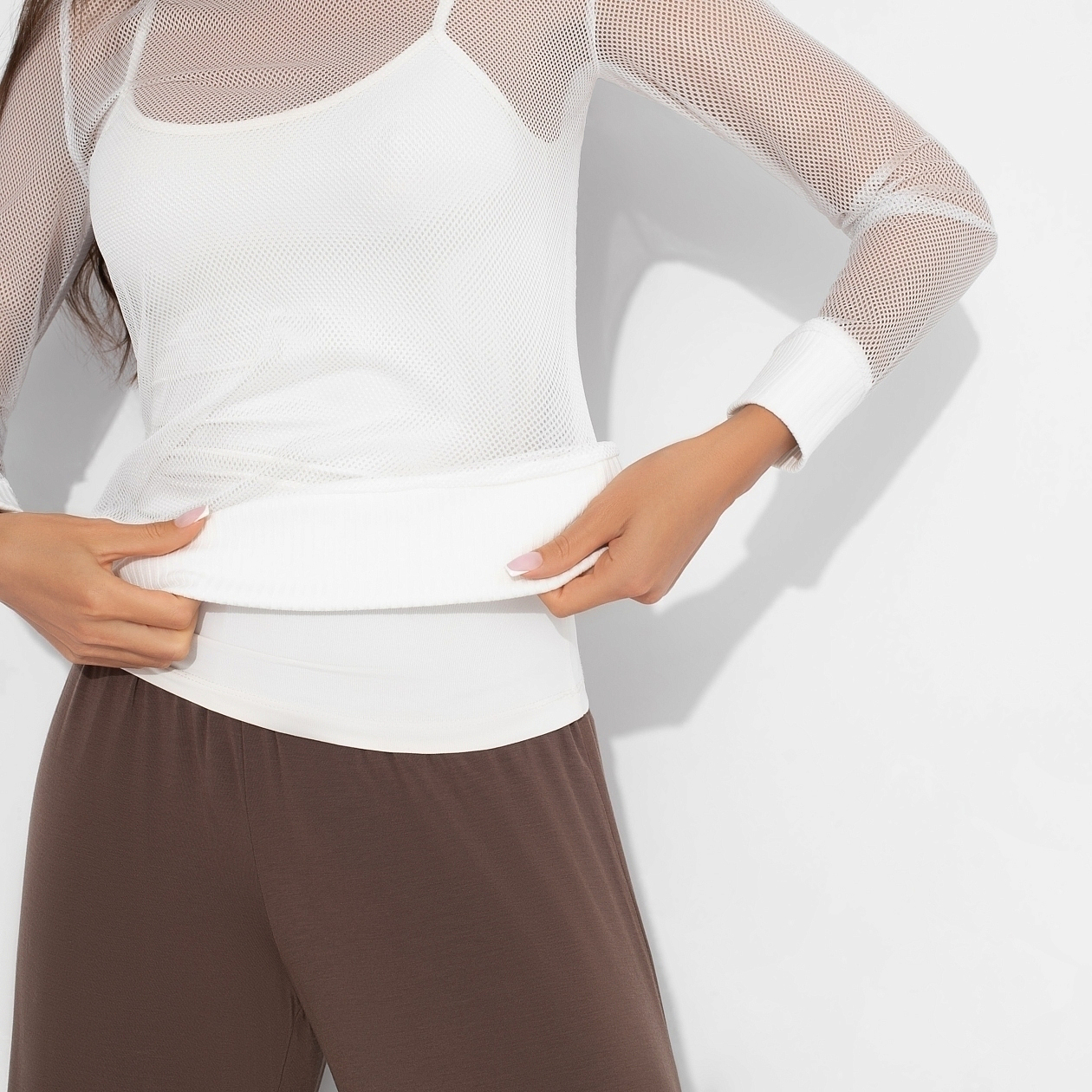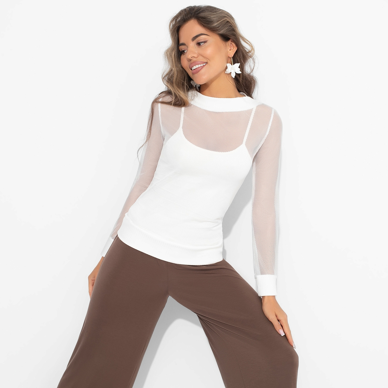 Лонгслив, который держит интригу дольше, чем любой роман. Невесомая сетка, безупречный белый, магия недосказанности – в нём вы управляете вниманием одним движением. Лонгслив из сетки, полупрозрачный. Нижний слой в комплекте не идёт.