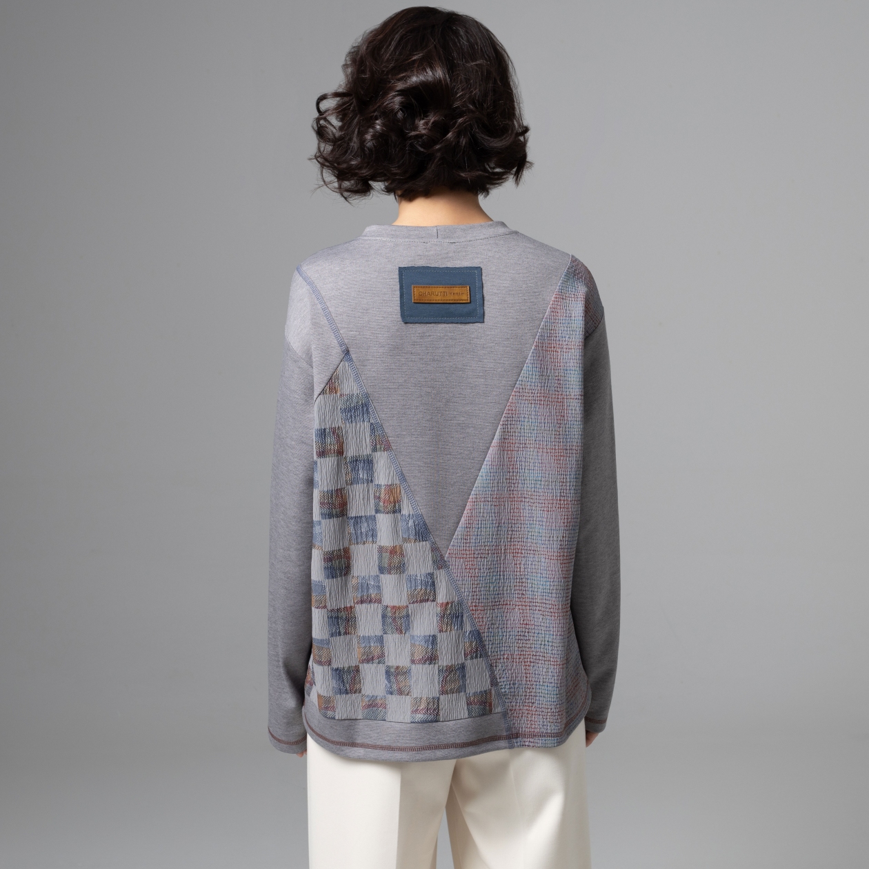 Вещь, которая создаёт стильный образ без усилий. Лонгслив из потрясающе тактильного трикотажа с акцентными асимметричными элементами – так выглядит новый код тихой роскоши. Мягкий серый, сложные фактуры и геометрия делают образ премиальным, но по‑настоящему удобным для жизни – от арт-пространств до путешествий. Диагональные и клетчатые вставки визуально стройнят и маскируют зону живота. Универсальный серый оттенок отлично миксуется и подходит разным цветотипам.