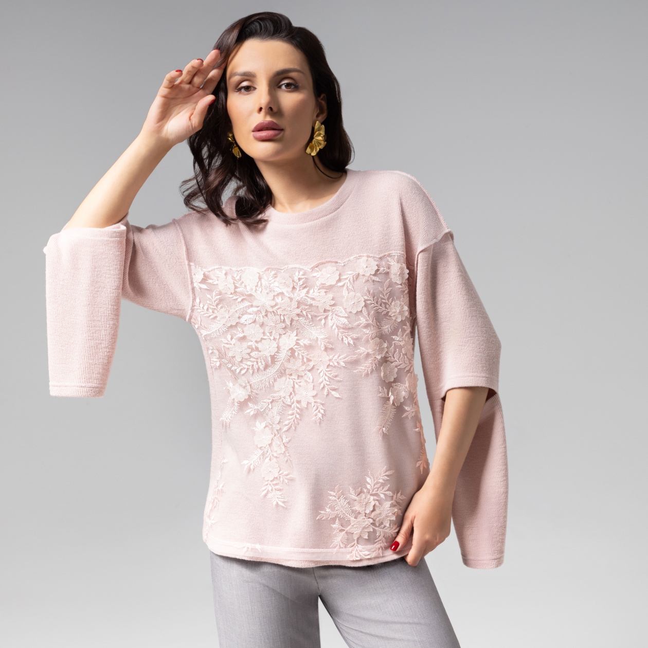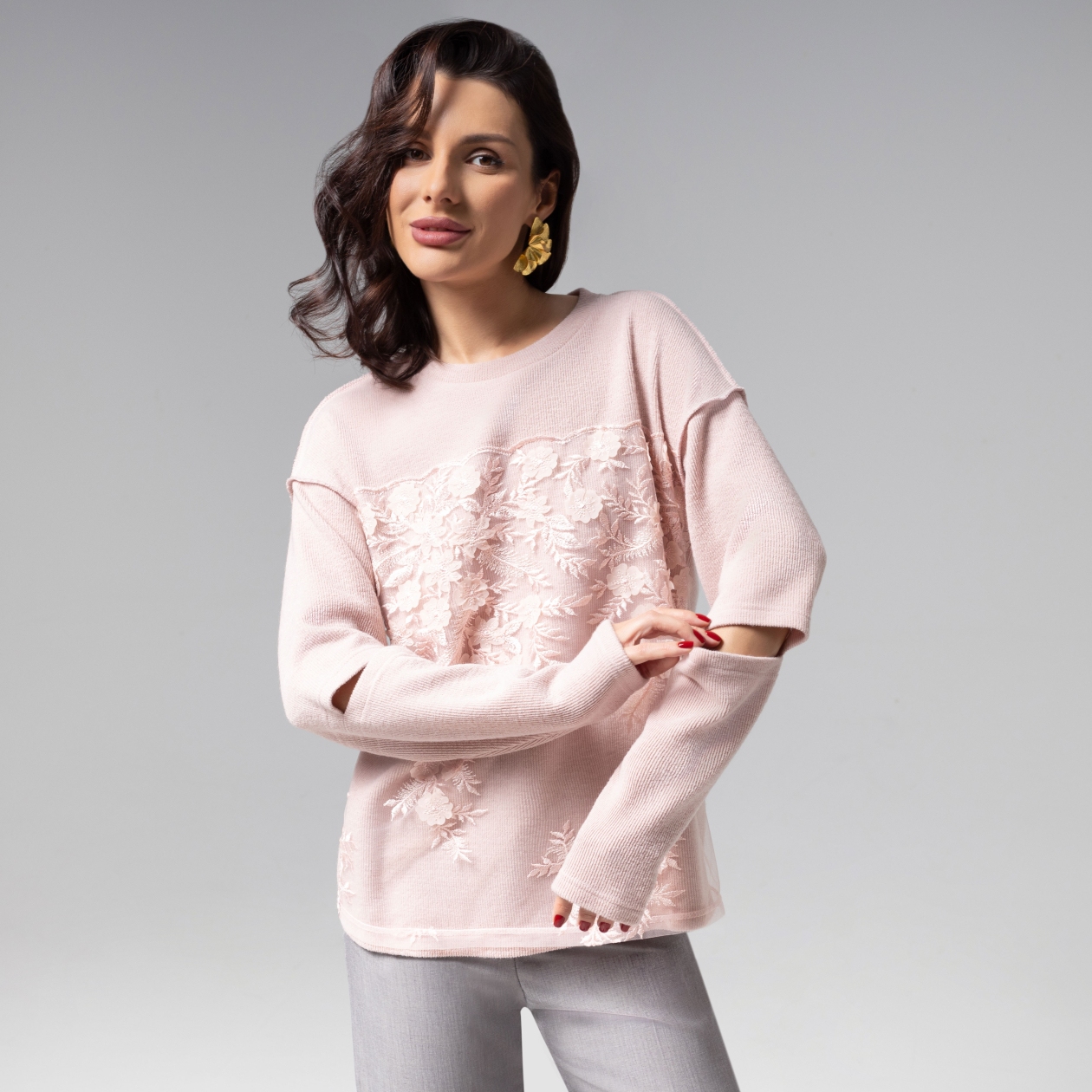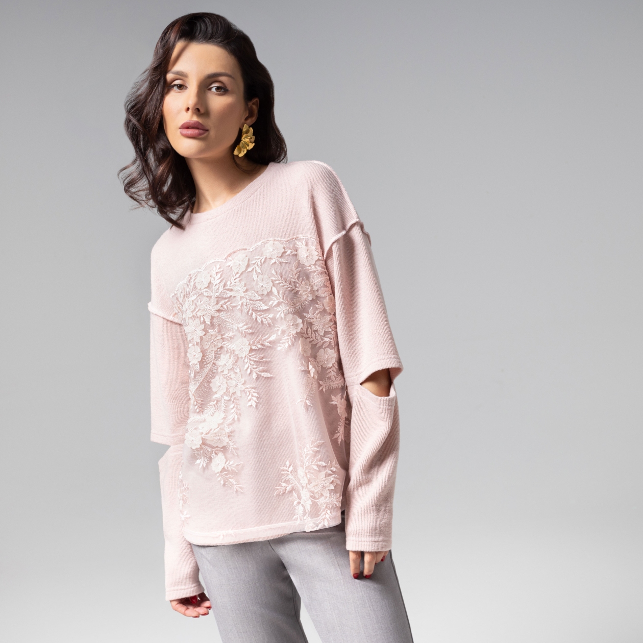 Нежно-розовый лонгслив ЧАРУТТИ из коллекции PREMIUM с ажурной игрой деталей – воплощение женственности в casual-интерпретации. Основой образа служит роскошная ткань плотного плетения с мягкой матовой фактурой. Дополняет образ благородство пастельного оттенка, а художественные прорези на рукавах создают эффект воздушности. Объёмный цветочный 3D-декор добавляет скульптурную глубину, превращая базовый силуэт в предмет высокого fashion-искусства. Многоступенчатый контроль качества пошива гарантирует безупречную посадку и долговечность каждой строчки. Ошибка при загрузке данных! (https://charutti.ru/upload/video-site/00000011993_video_site.mp4)