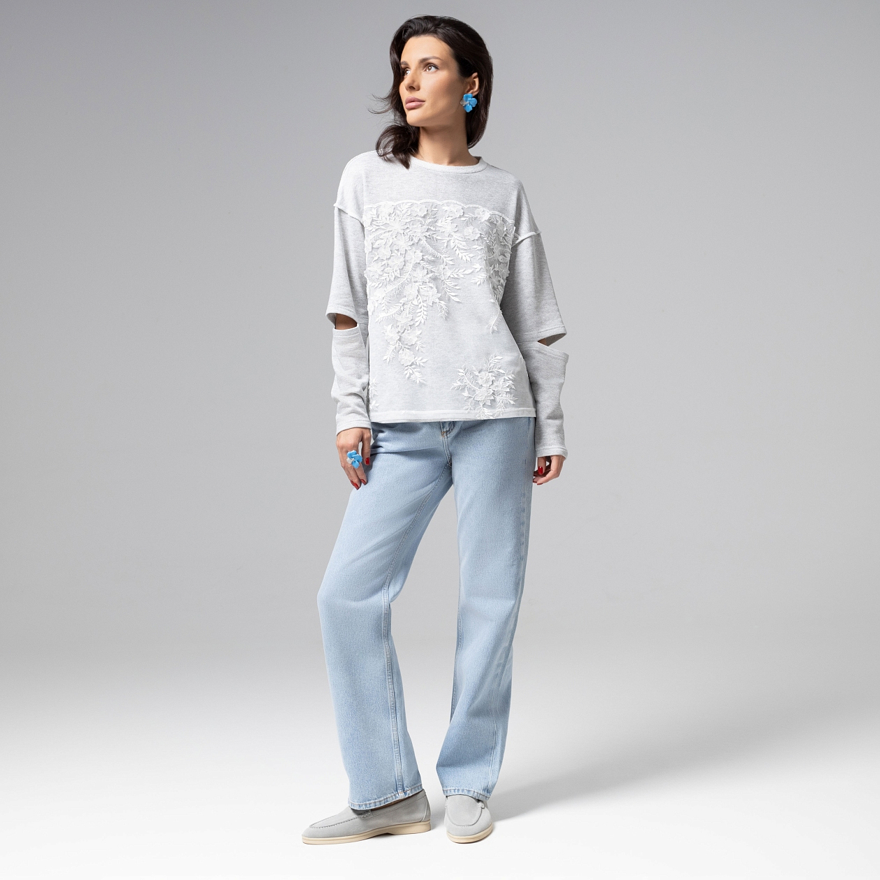 Лонгслив CHARUTTI – воплощение сдержанной повседневной роскоши. Мягкая премиальная ткань высокой плотности, приятная к телу, подчеркивает хрупкость вашего силуэта, а модные декоративные прорези на рукавах и акцентные швы наружу добавляют ноту современной утонченности. Объемный цветочный декор, выполненный с ювелирной аккуратностью, становится выразительным акцентом, не нарушая гармонии образа. Каждый шов и деталь проходят многоэтапный контроль качества, гарантируя безупречность, достойную истинных ценителей высокого стиля.
