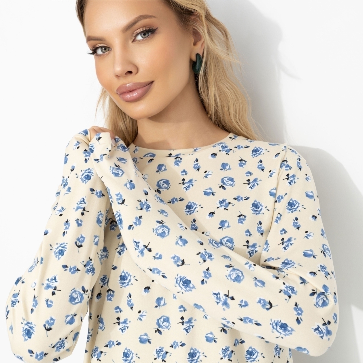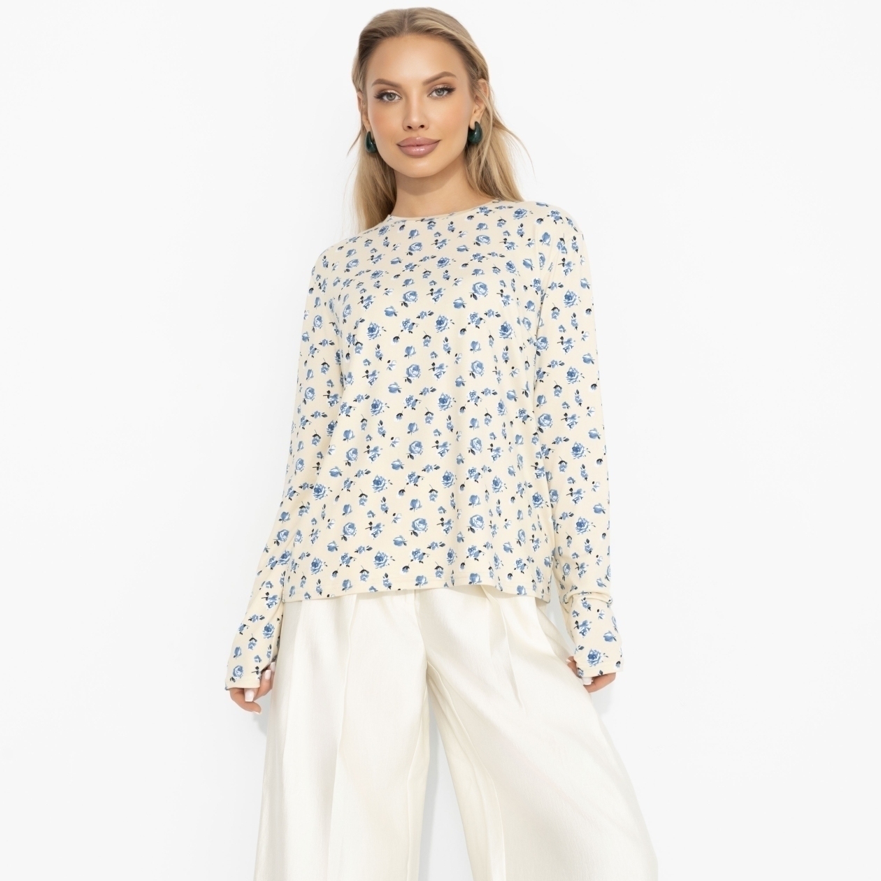 Тренд сезона – new romantic minimal: лёгкость, чистые оттенки и деликатные принты, которые создают настроение без перегруза. Этот лонгслив попадает точно в волну, которую показывали в своих коллекциях Chloé и Zimmermann. Нежный цветочный рисунок звучит свежо, тонкий трикотаж мягко облегает, вискоза дарит пластичность, эластан – комфорт. Вау-эффект здесь не в громкости, а в том, как тонко работает красота.
