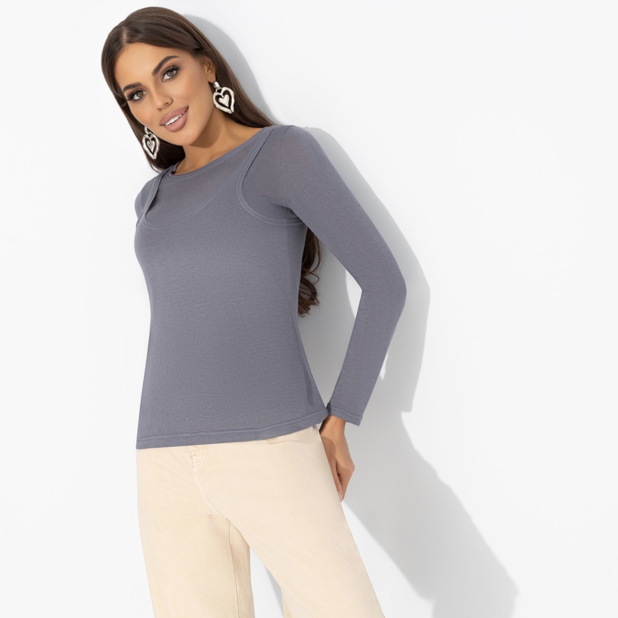 Этот лонгслив ЧАРУТТИ - просто находка и любимчик! Ты выбираешь его буквально каждый день. В спортзал, в кафе, на шоппинг, к ветеринару с котом и в кино. И он притягивает особое внимание! Вероятно, дело в глубоком сером цвете. А может всех манит комбинация двух отдельных изделий – лонгслив и майка смотрятся просто бомбически.