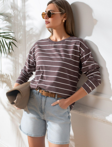 Лонгслив в полоску из премиального хлопка с эластаном