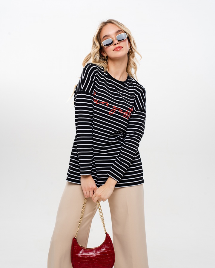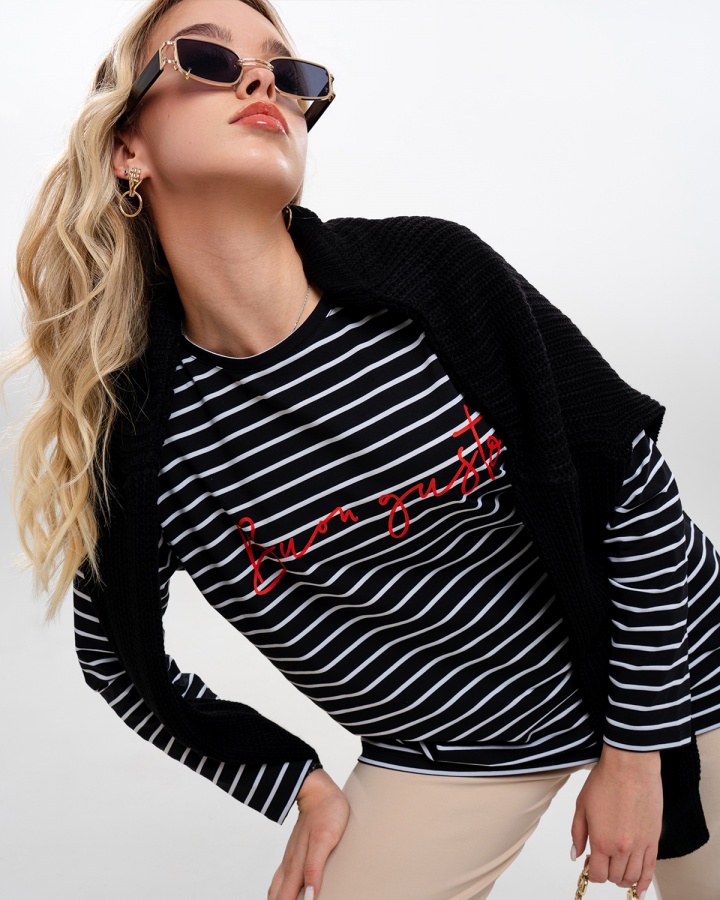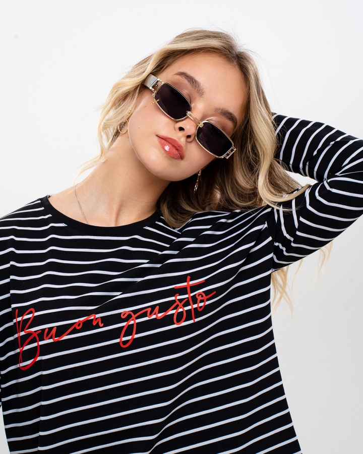 1200р1480р Лонгслив в полоску с надписью 70.7.1