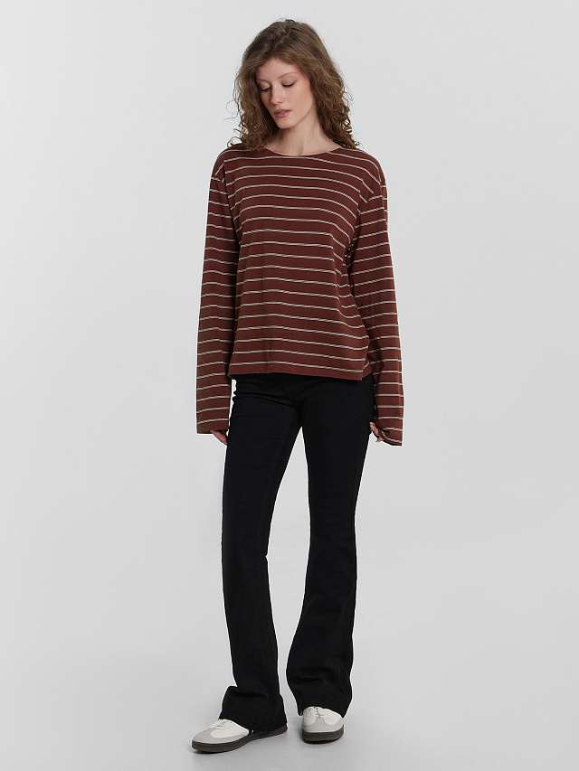 Лонгслив женский коричневый в полоску
