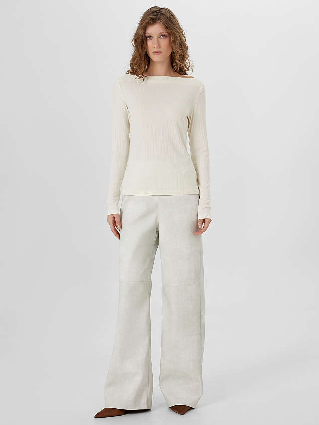 Женский лонгслив из рибаны сочетает в себе простоту, комфорт и универсальность. Прилегающий силуэт подчеркивает фигуру, создавая аккуратный и лаконичный образ. Горловина лодочкой делает вещь более женственной и элегантной, мягко акцентируя линию шеи. Длинные рукава позволяют носить лонгслив в прохладное время года или в многослойных комплектах. Эта модель легко сочетается с различными элементами гардероба — от классических брюк до джинсов и юбок, оставаясь актуальной как для повседневных, так и для офисных образов.