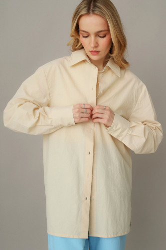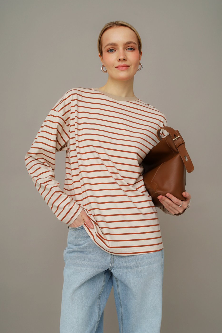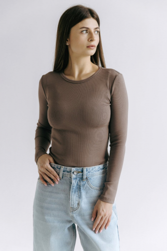 Округлый вырез горловины. В боковых швах разрезы. Удлинённая спинка.