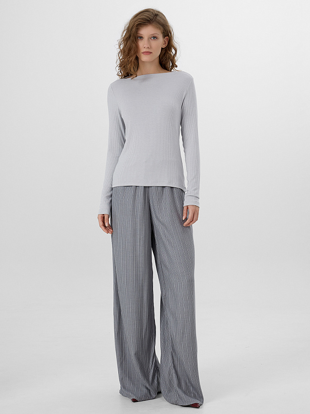 Женский лонгслив из рибаны сочетает в себе простоту, комфорт и универсальность. Прилегающий силуэт подчеркивает фигуру, создавая аккуратный и лаконичный образ. Горловина лодочкой делает вещь более женственной и элегантной, мягко акцентируя линию шеи. Длинные рукава позволяют носить лонгслив в прохладное время года или в многослойных комплектах. Эта модель легко сочетается с различными элементами гардероба — от классических брюк до джинсов и юбок, оставаясь актуальной как для повседневных, так и для офисных образов.