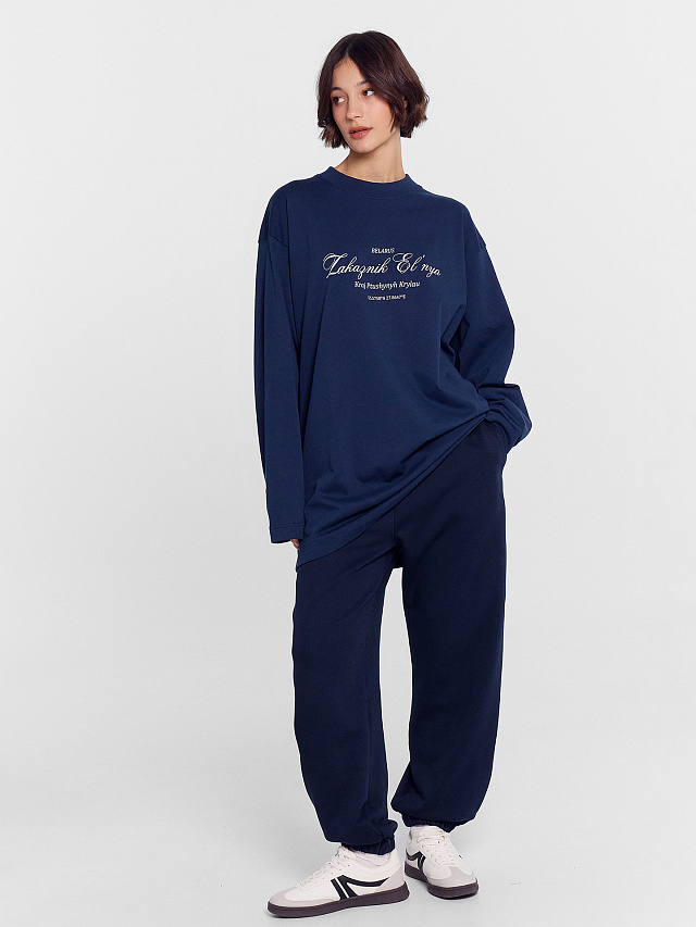 Лонгслив женский синий из коллекции "Zakaзnik El’nya / Заказник Ельня"