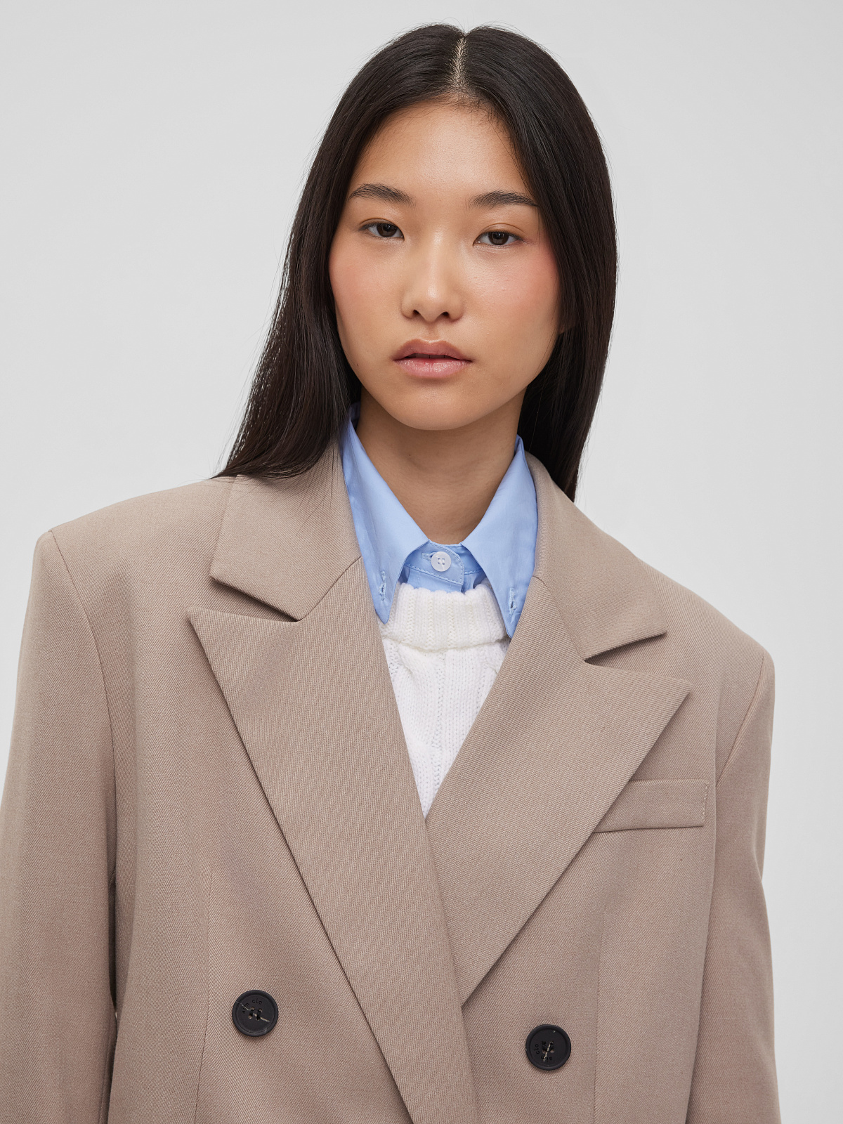 РОЗНИЧНАЯ ЦЕНА 18650руб. Классический двубортный жакет свободного кроя станет универсальным элементом вашего гардероба, идеально подходящим для любых случаев. Жакет выполнен из качественной костюмной ткани на подкладе, оснащен застежкой на пуговицы, воротником пиджачного типа и двумя прорезными карманами с клапанами.