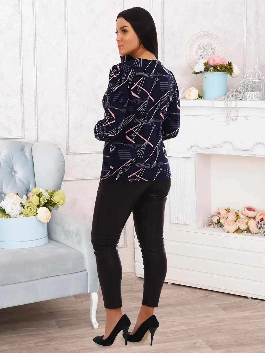 Женский джемпер с оригинальным вырезом, переходящим в завязки, приталенного силуэта. Рукав длинный с плотным манжетом.