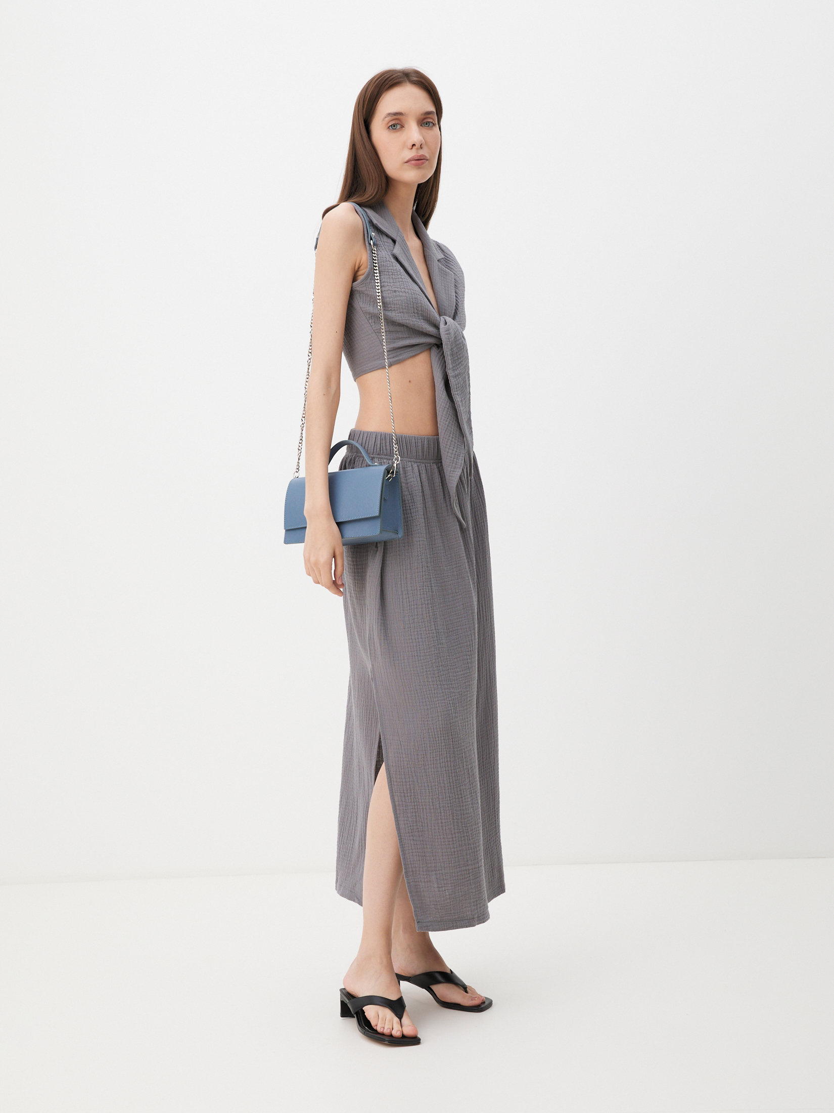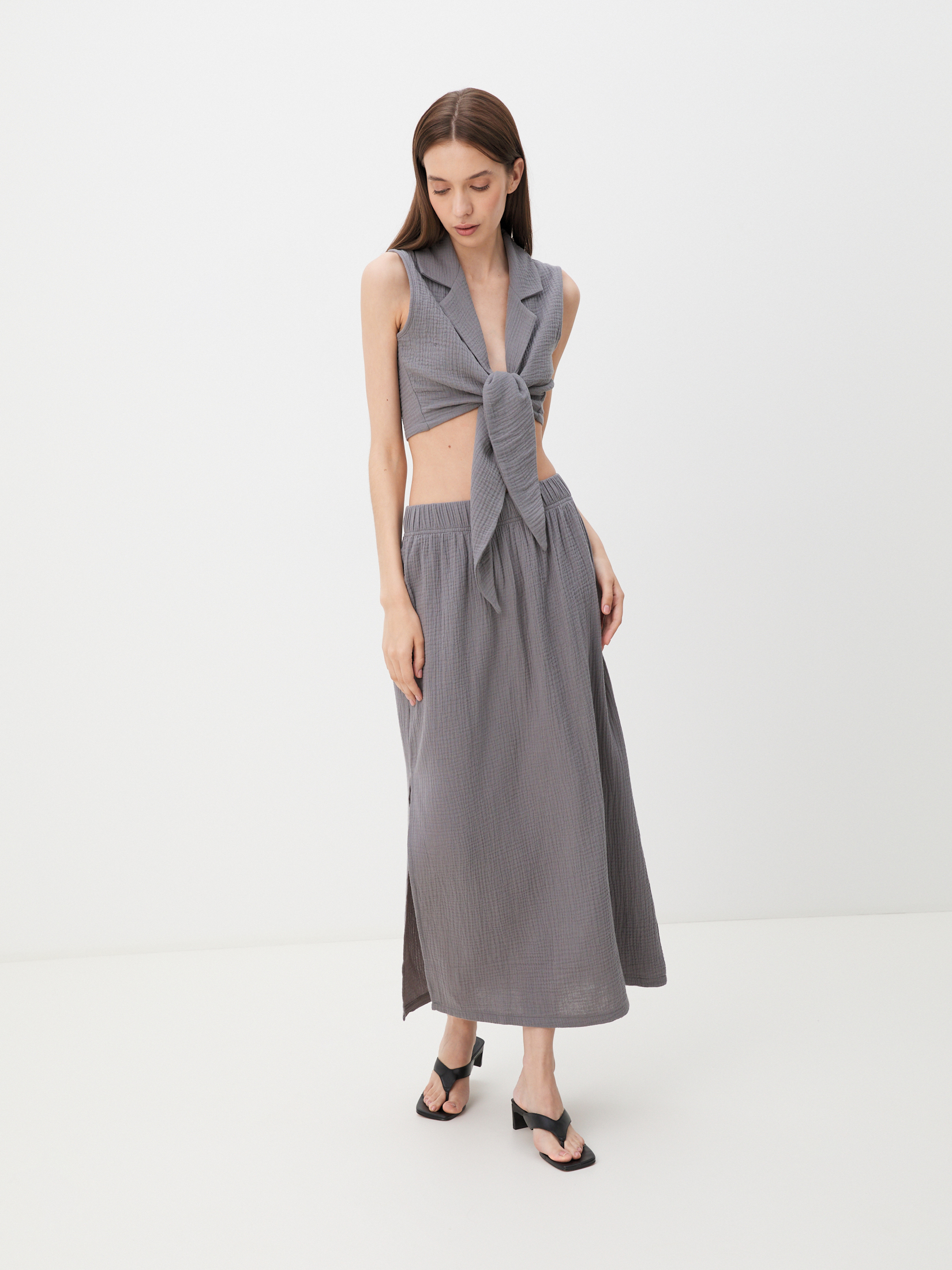 Топ из муслина MAISON DAVID 4236055, графитовый