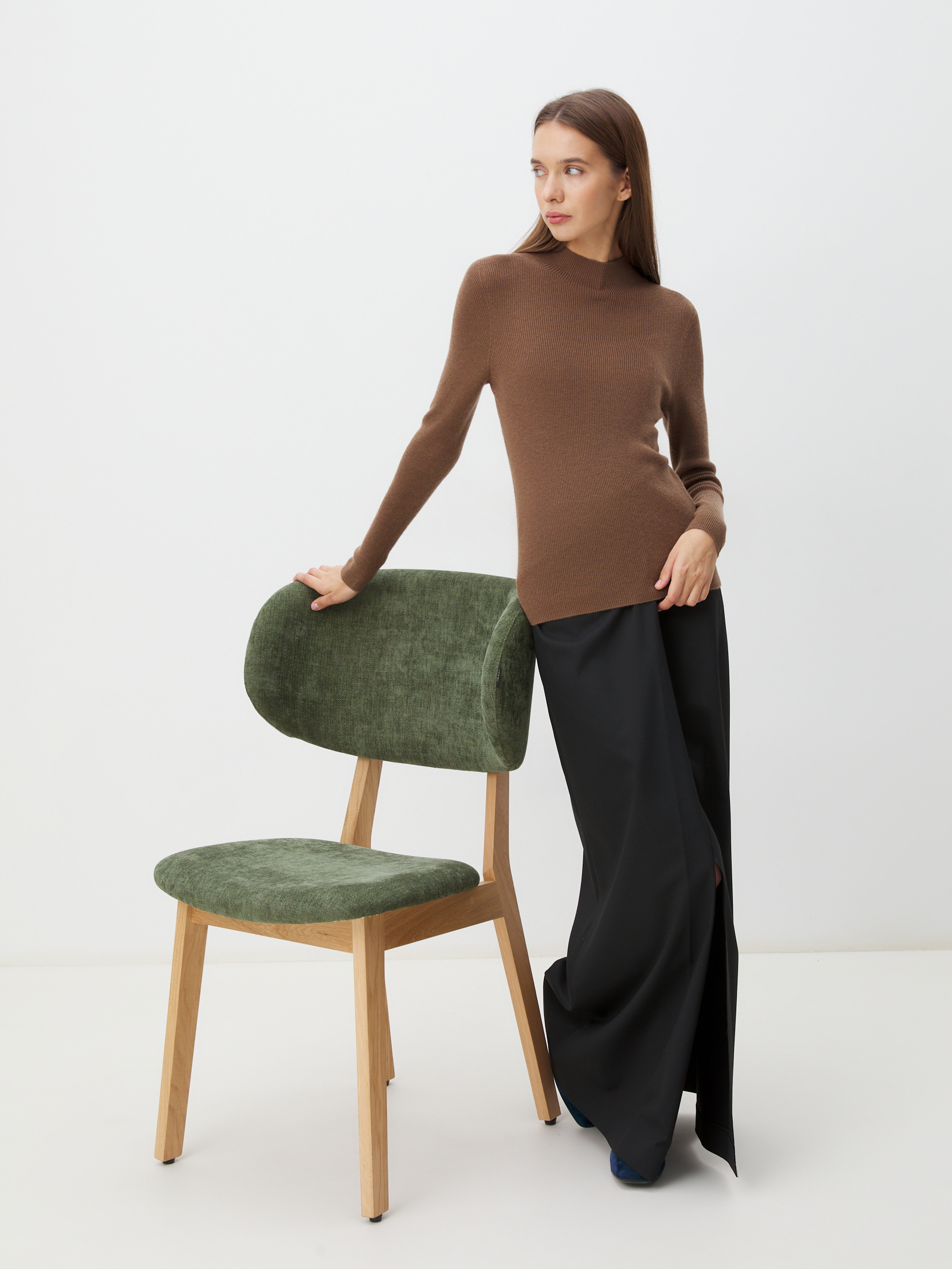 Модель создана из 100% шерсти мериноса – натурального материала, который получают от особой породы тонкорунных овец. Шерсть мериноса ценится за нежность, мягкость и эластичность. Натуральная шерсть пропускает воздух, не создавая парникового эффекта, поэтому ваша кожа останется сухой. В шерстяных вещах тепло, но не жарко. У волокон мериноса есть завитки, похожие на пружинки. Грязь не проникает в них, а остается снаружи, благодаря чему шерстяные вещи долго остаются свежими.