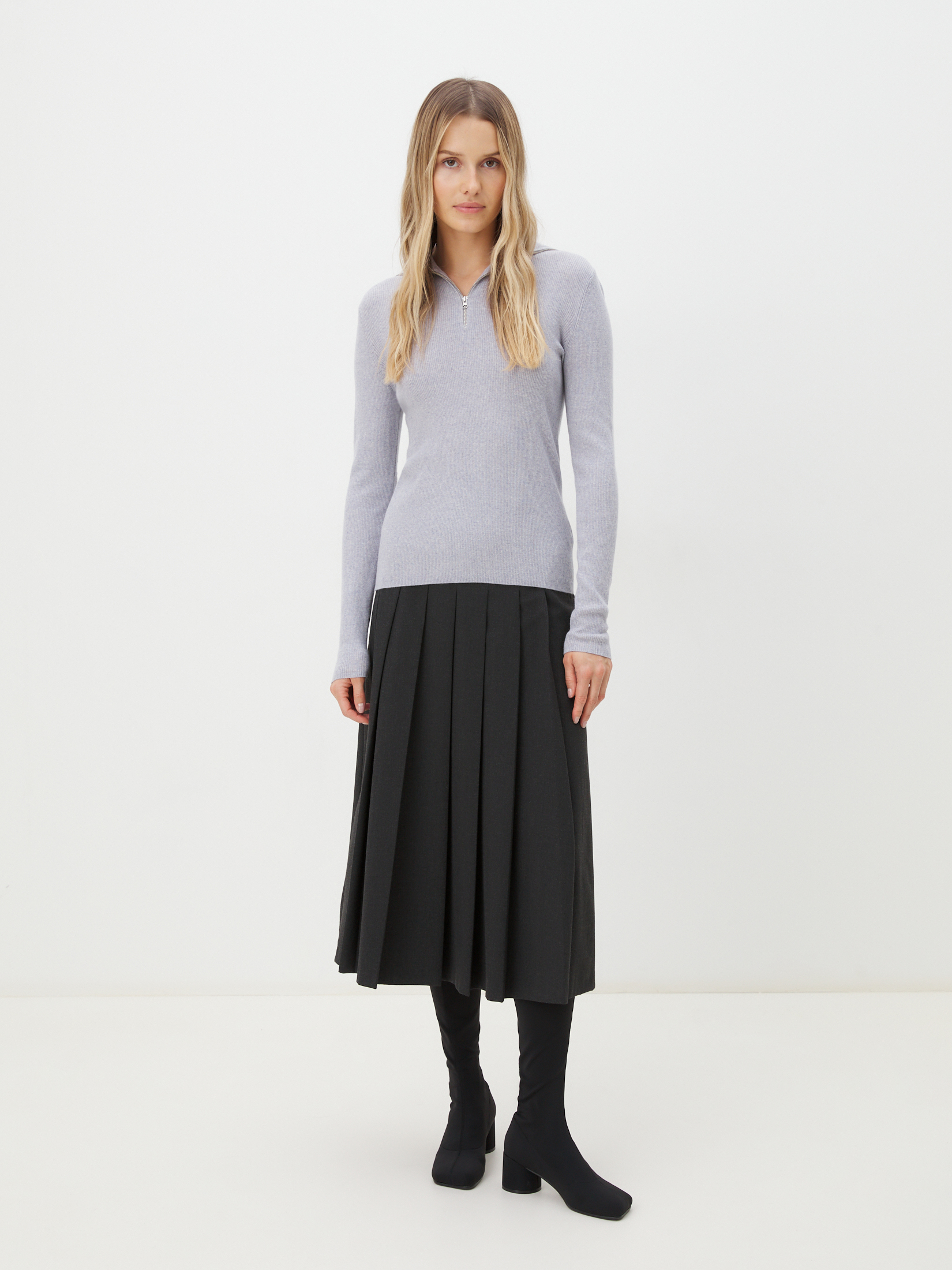 Модель создана из 100% шерсти мериноса – натурального материала, который получают от особой породы тонкорунных овец. Шерсть мериноса ценится за нежность, мягкость и эластичность. Натуральная шерсть пропускает воздух, не создавая парникового эффекта, поэтому ваша кожа останется сухой. В шерстяных вещах тепло, но не жарко. У волокон мериноса есть завитки, похожие на пружинки. Грязь не проникает в них, а остается снаружи, благодаря чему шерстяные вещи долго остаются свежими.