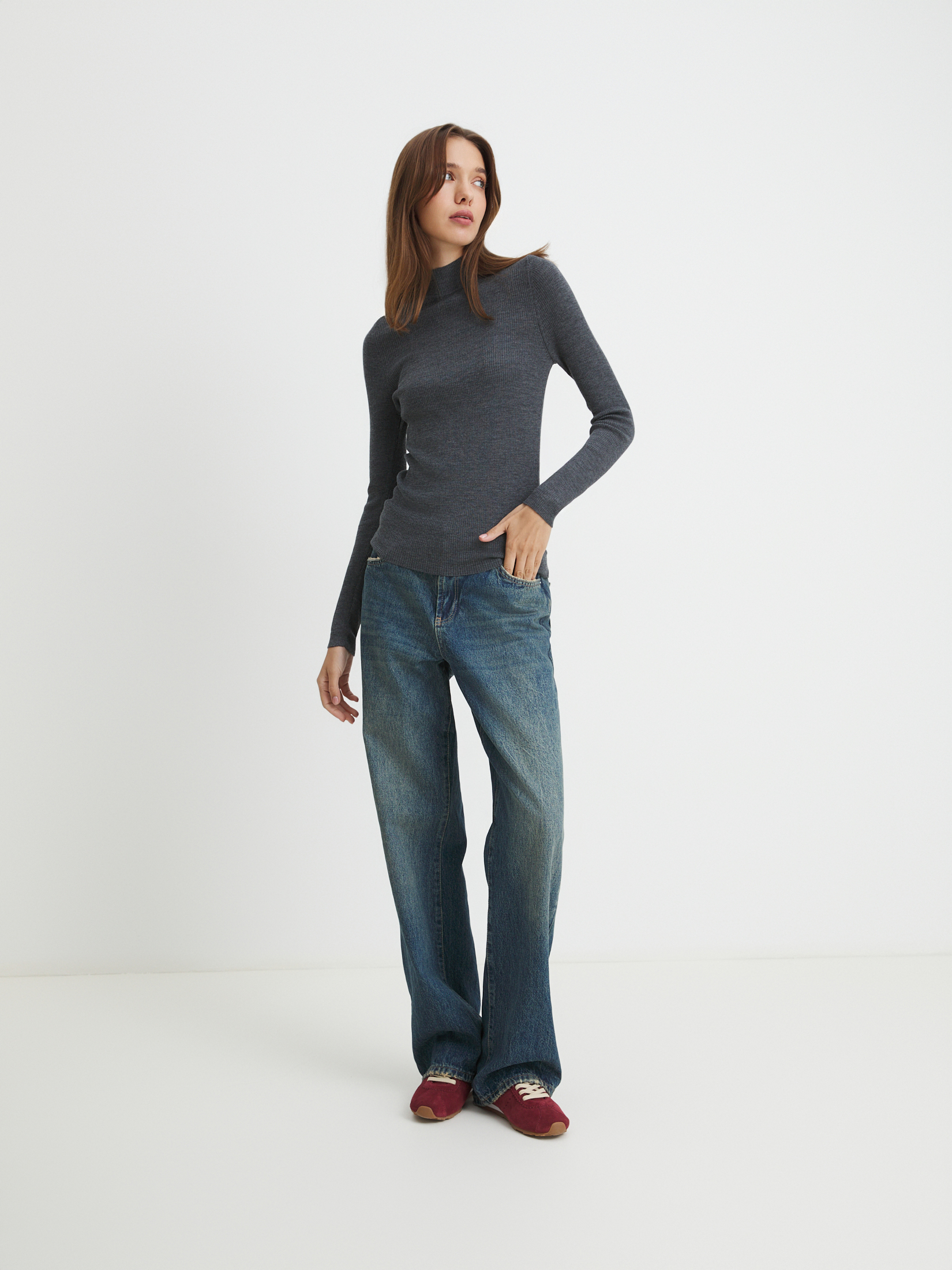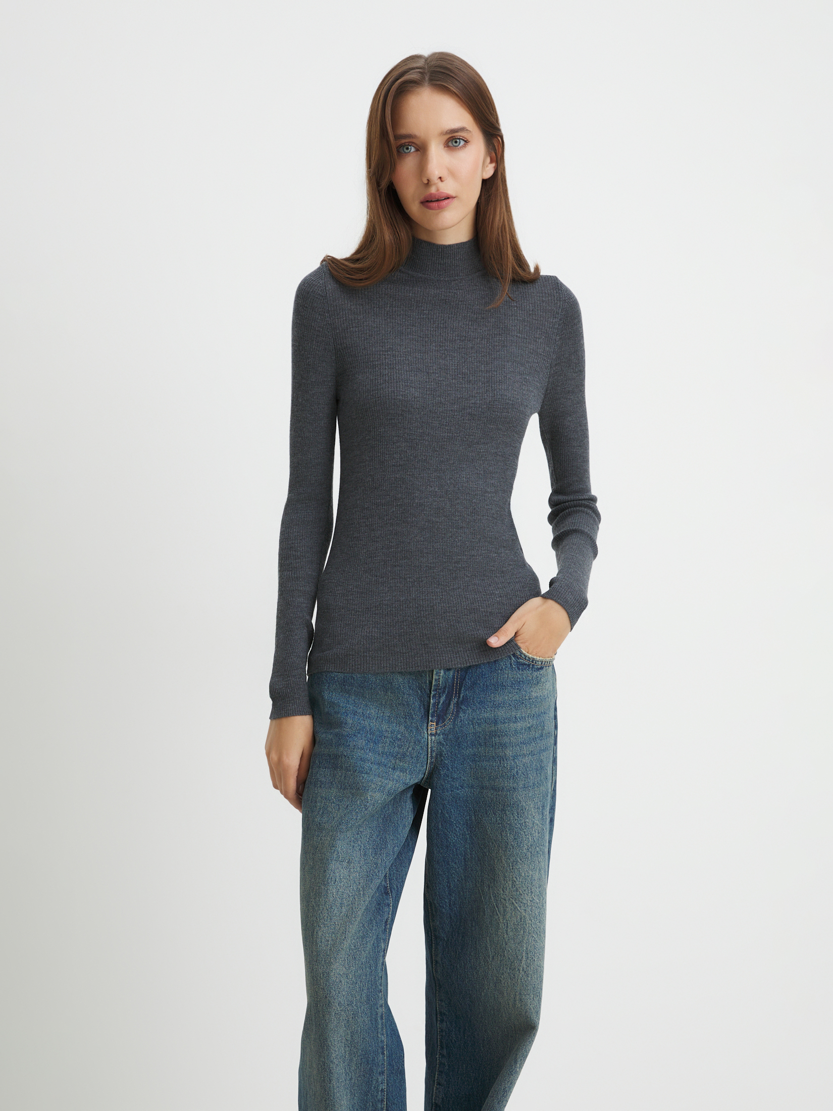 Модель создана из 100% шерсти мериноса – натурального материала, который получают от особой породы тонкорунных овец. Шерсть мериноса ценится за нежность, мягкость и эластичность. Натуральная шерсть пропускает воздух, не создавая парникового эффекта, поэтому ваша кожа останется сухой. В шерстяных вещах тепло, но не жарко. У волокон мериноса есть завитки, похожие на пружинки. Грязь не проникает в них, а остается снаружи, благодаря чему шерстяные вещи долго остаются свежими.