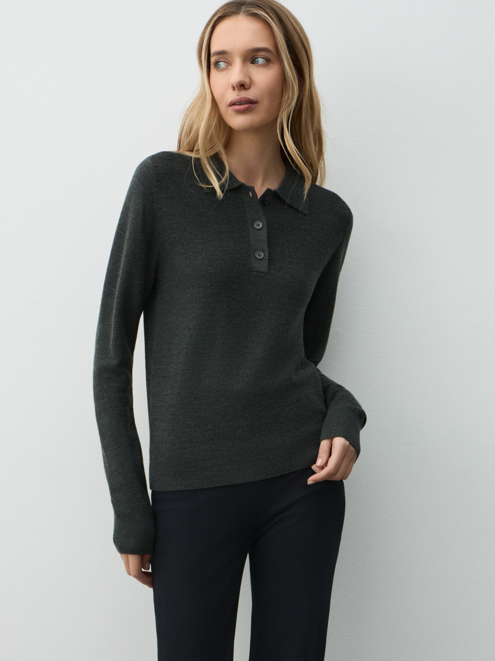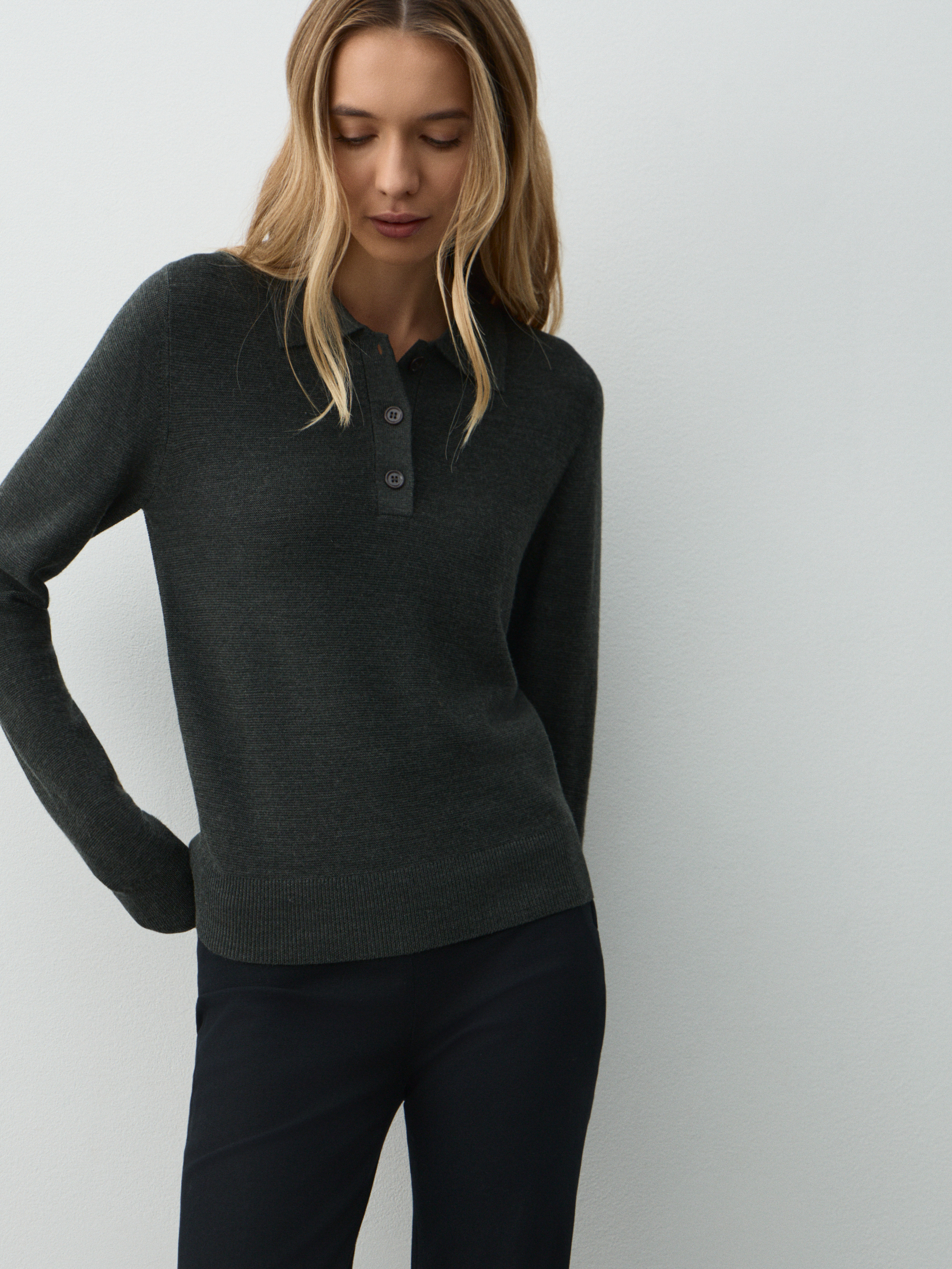 Женский джемпер поло MAISON DAVID 4862729, зеленовато-серый