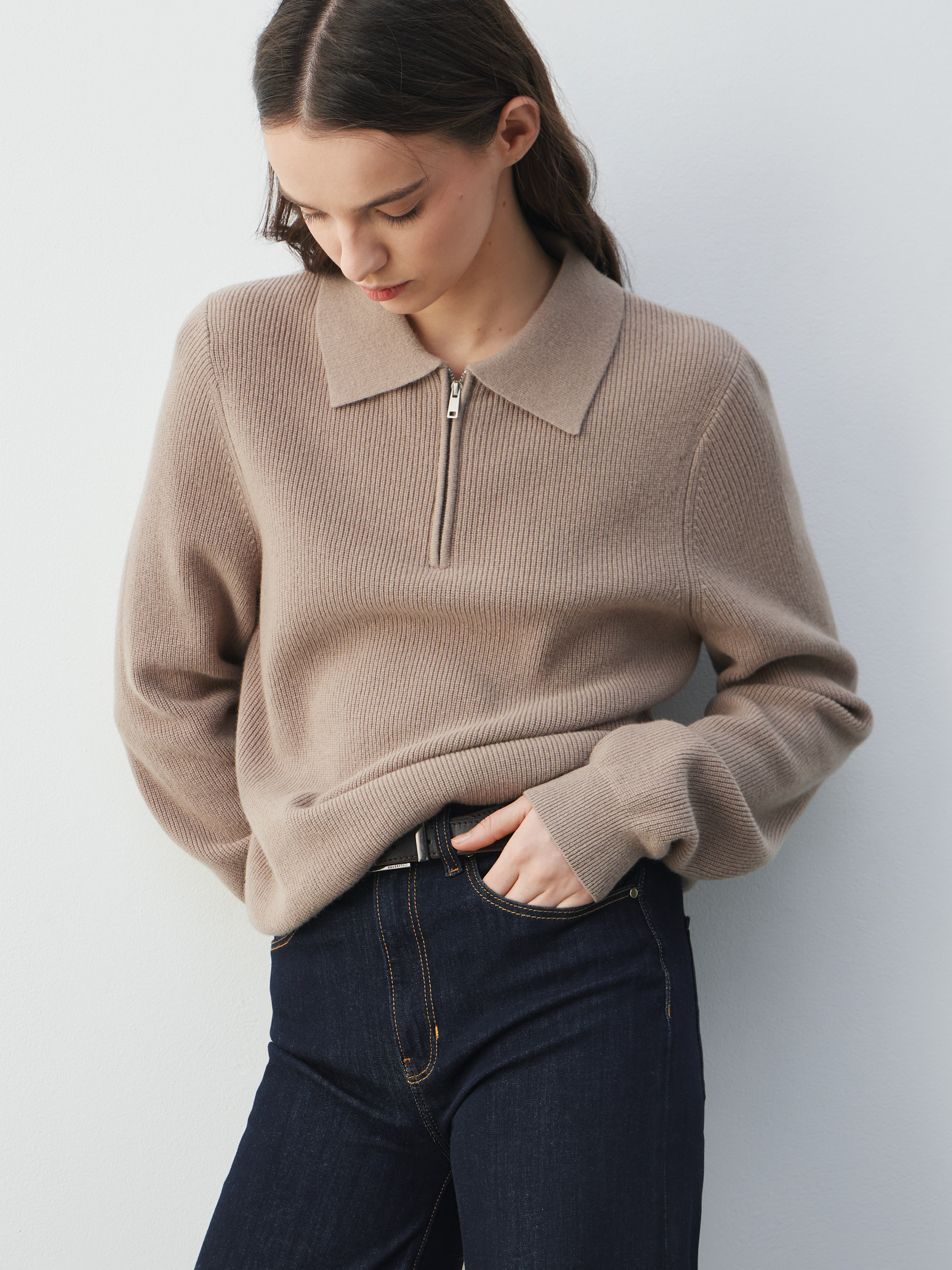 Женский джемпер поло MAISON DAVID 4870706, темно-бежевый