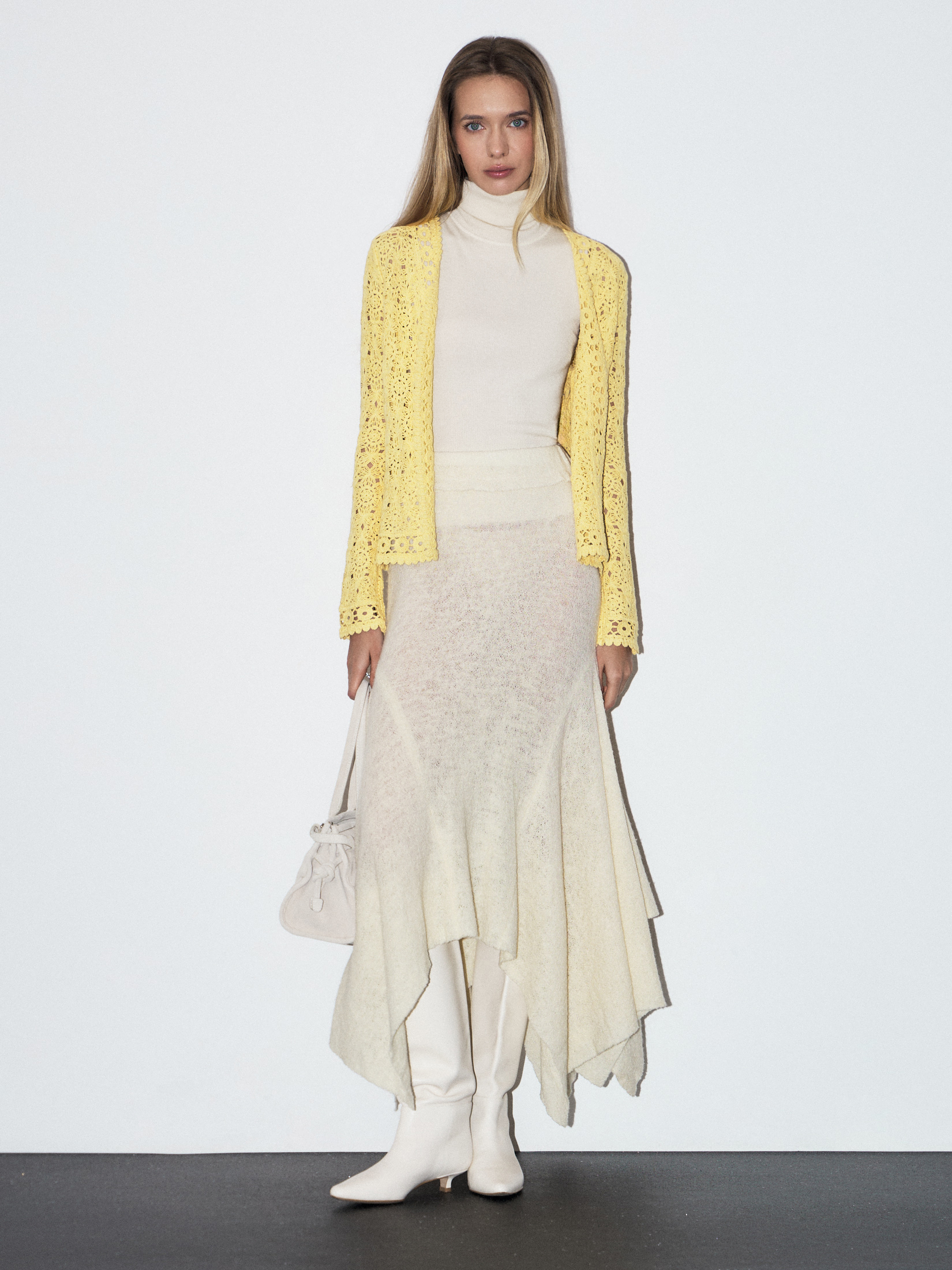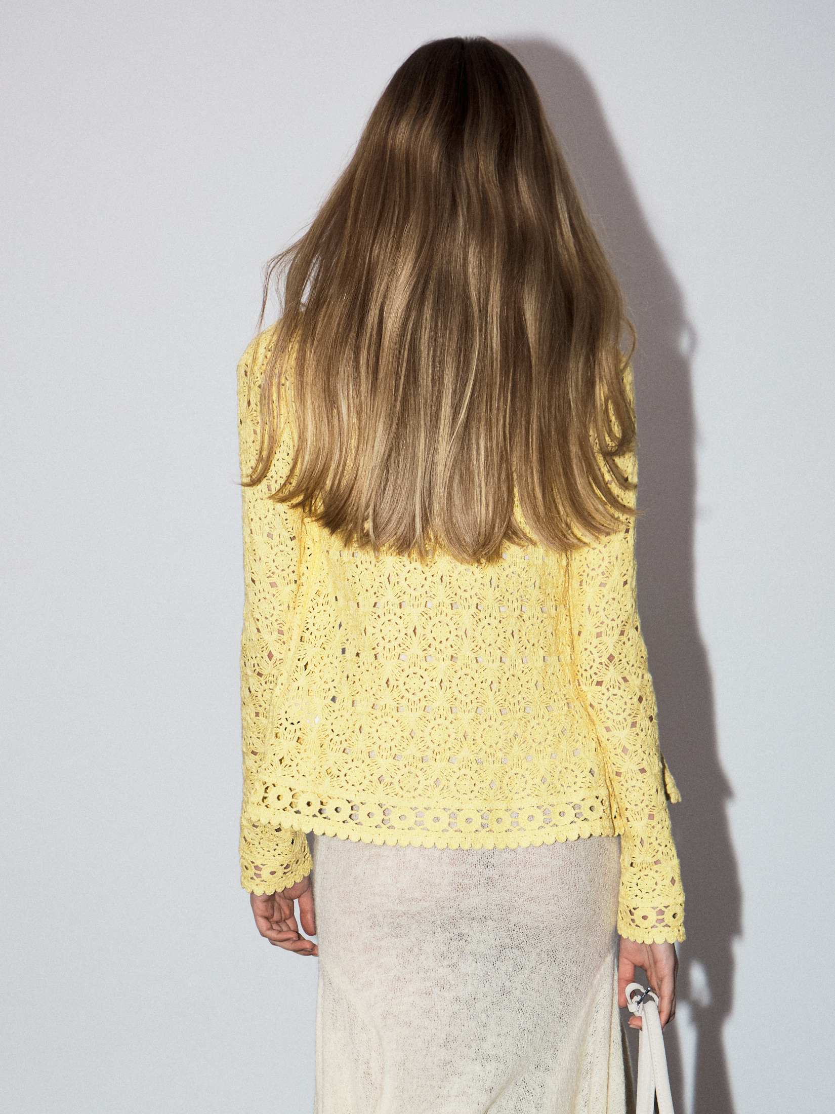 Женский кардиган кроше MAISON DAVID 4502713, светло-желтый