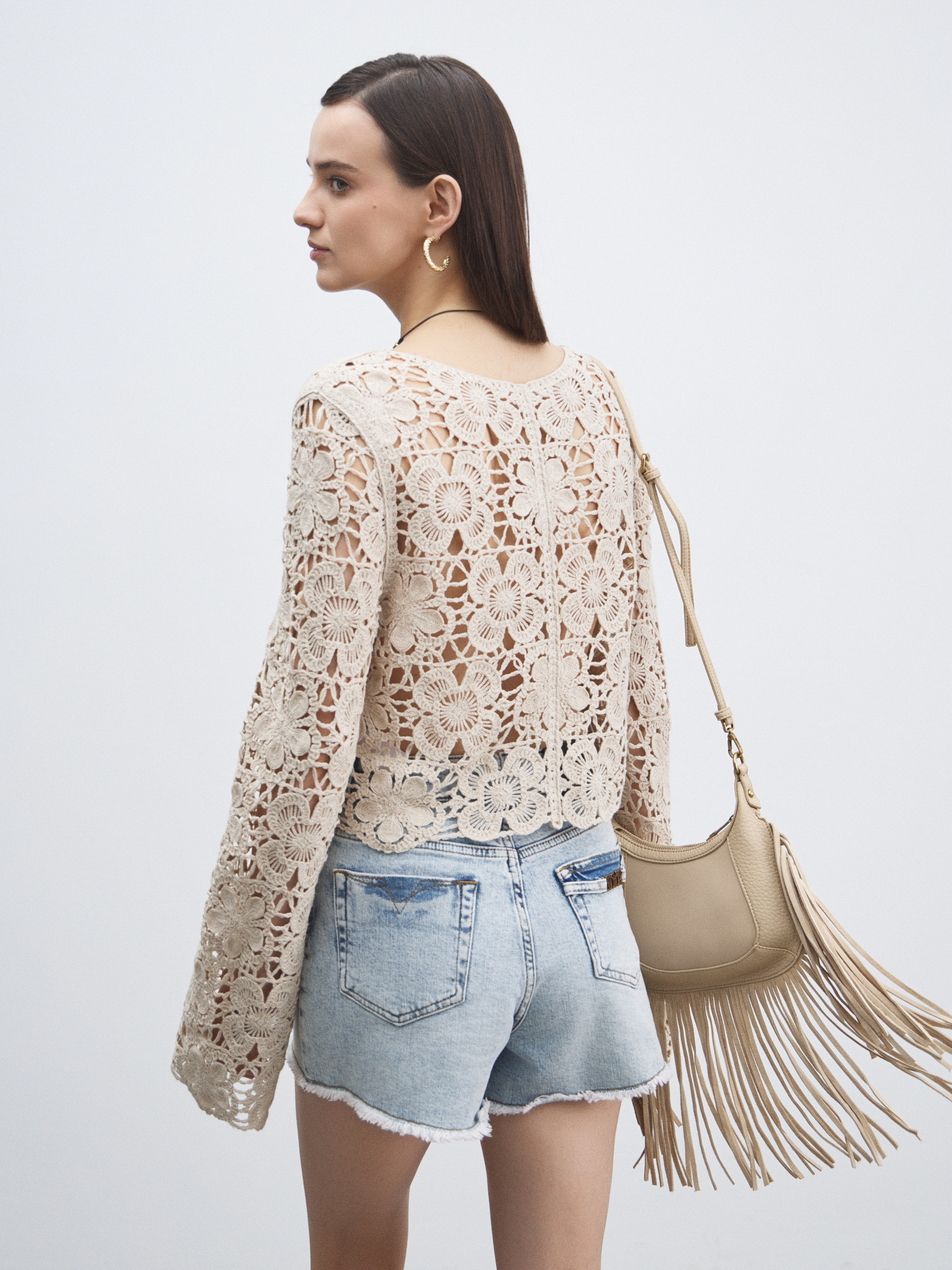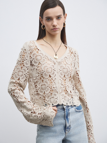 Женский кардиган кроше MAISON DAVID 4502744, серовато-бежевый