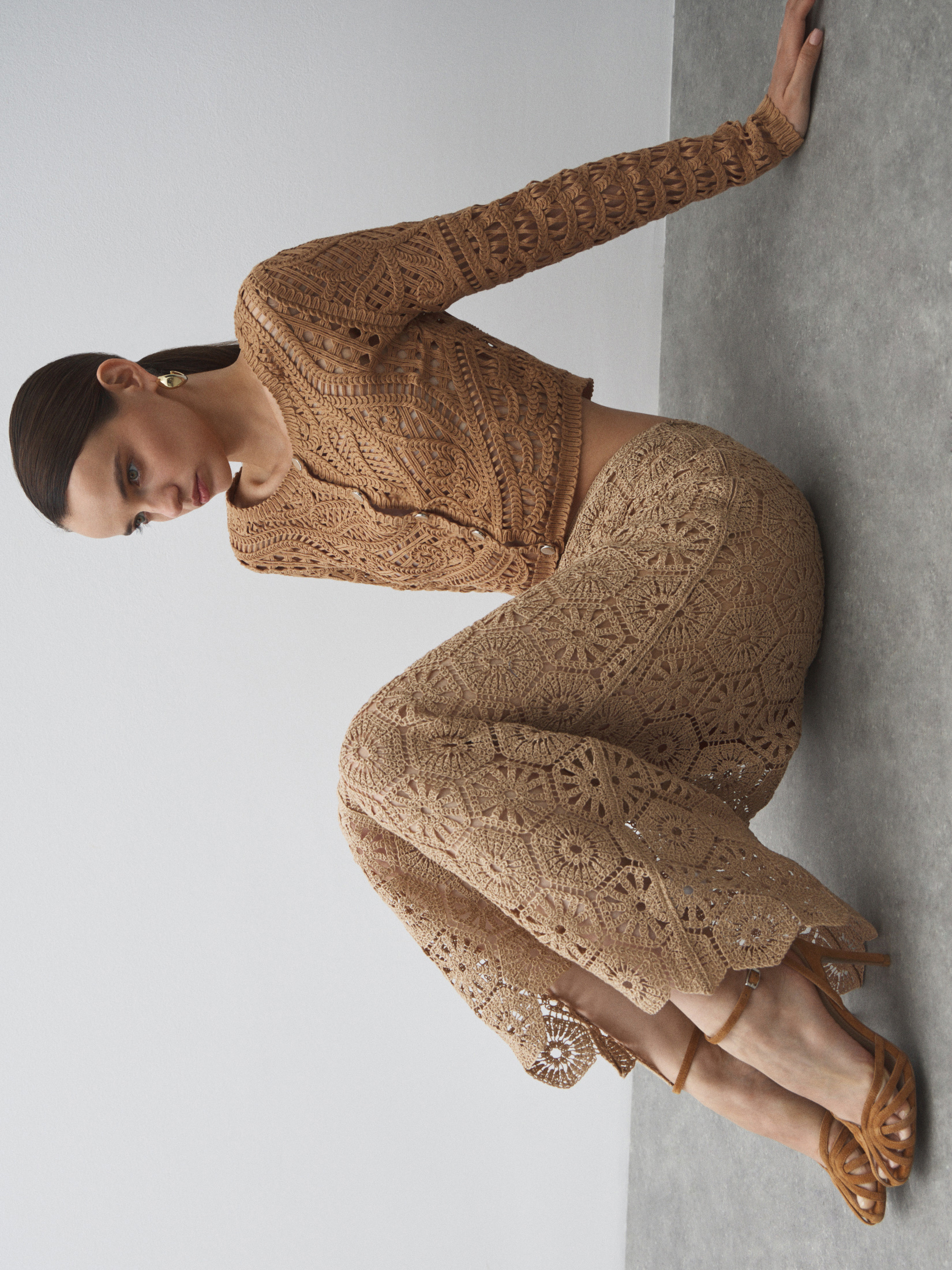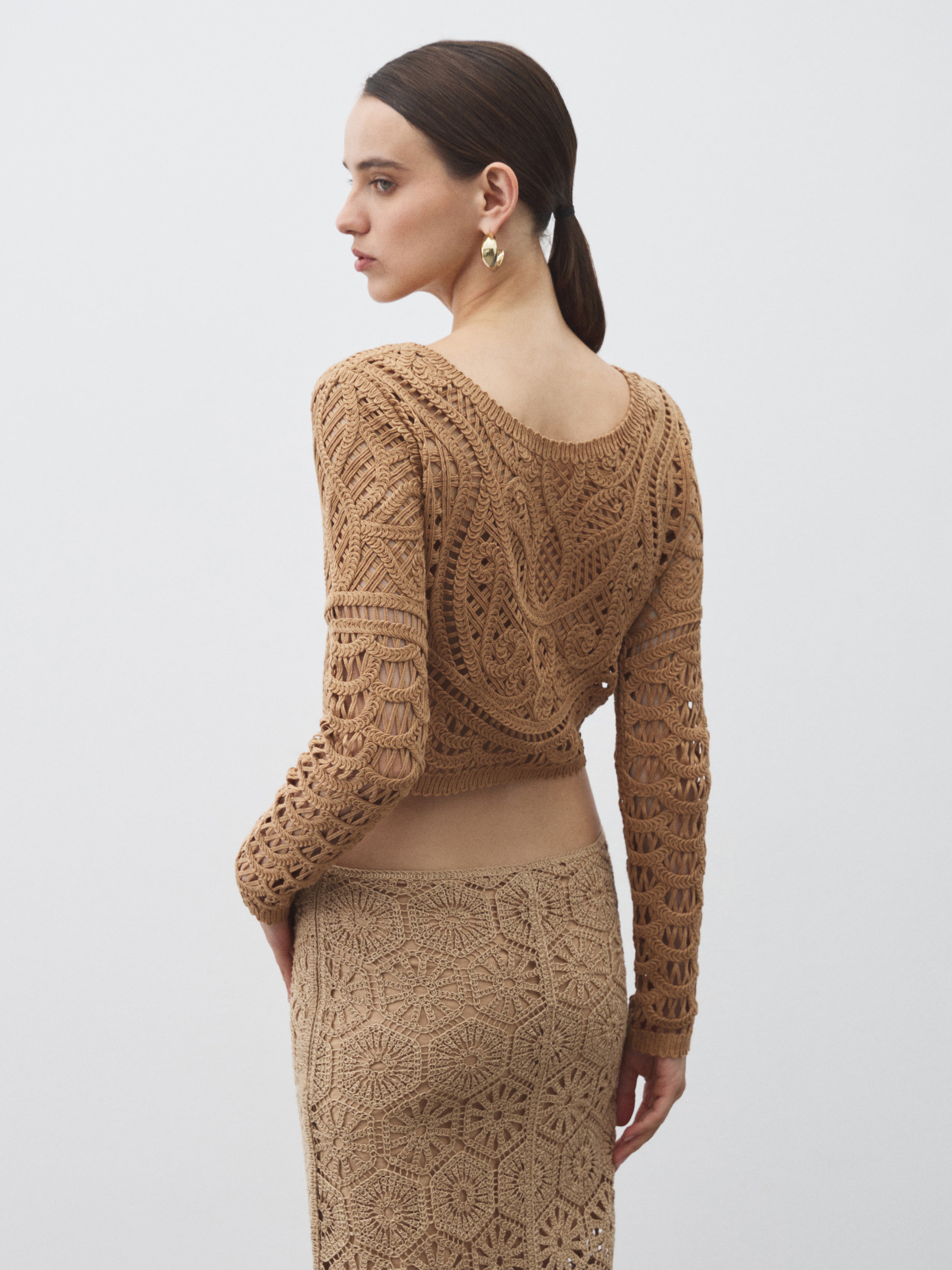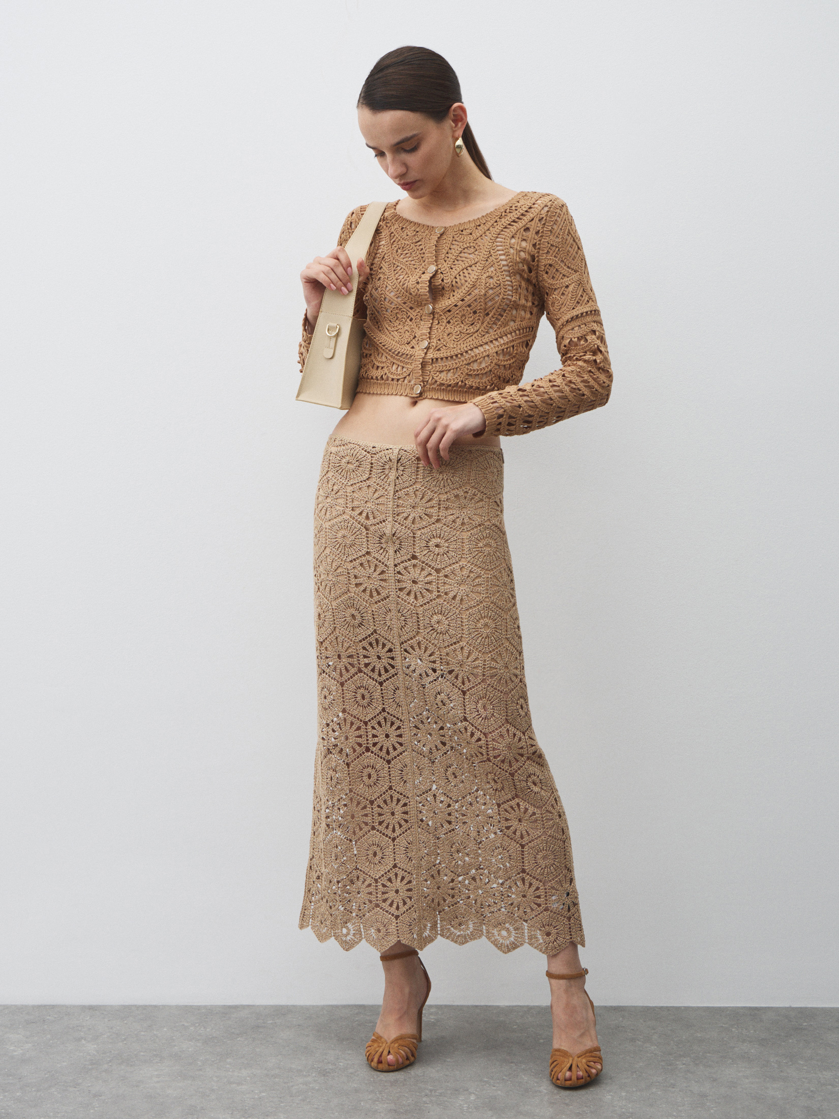 Женский кардиган кроше MAISON DAVID 4502790, бежево-коричневый