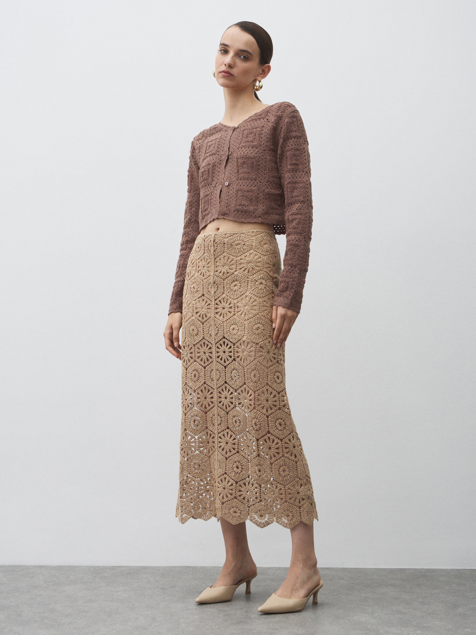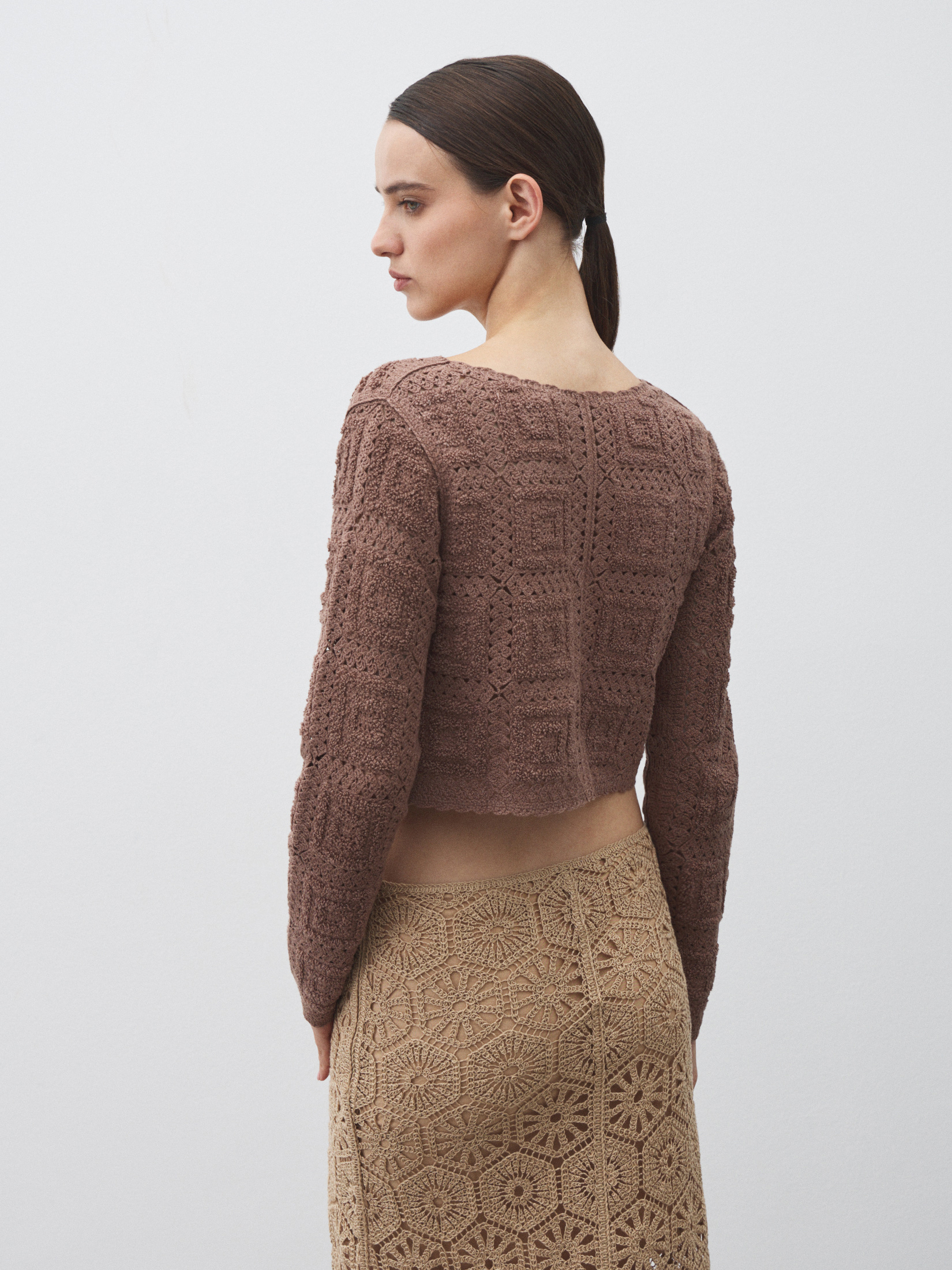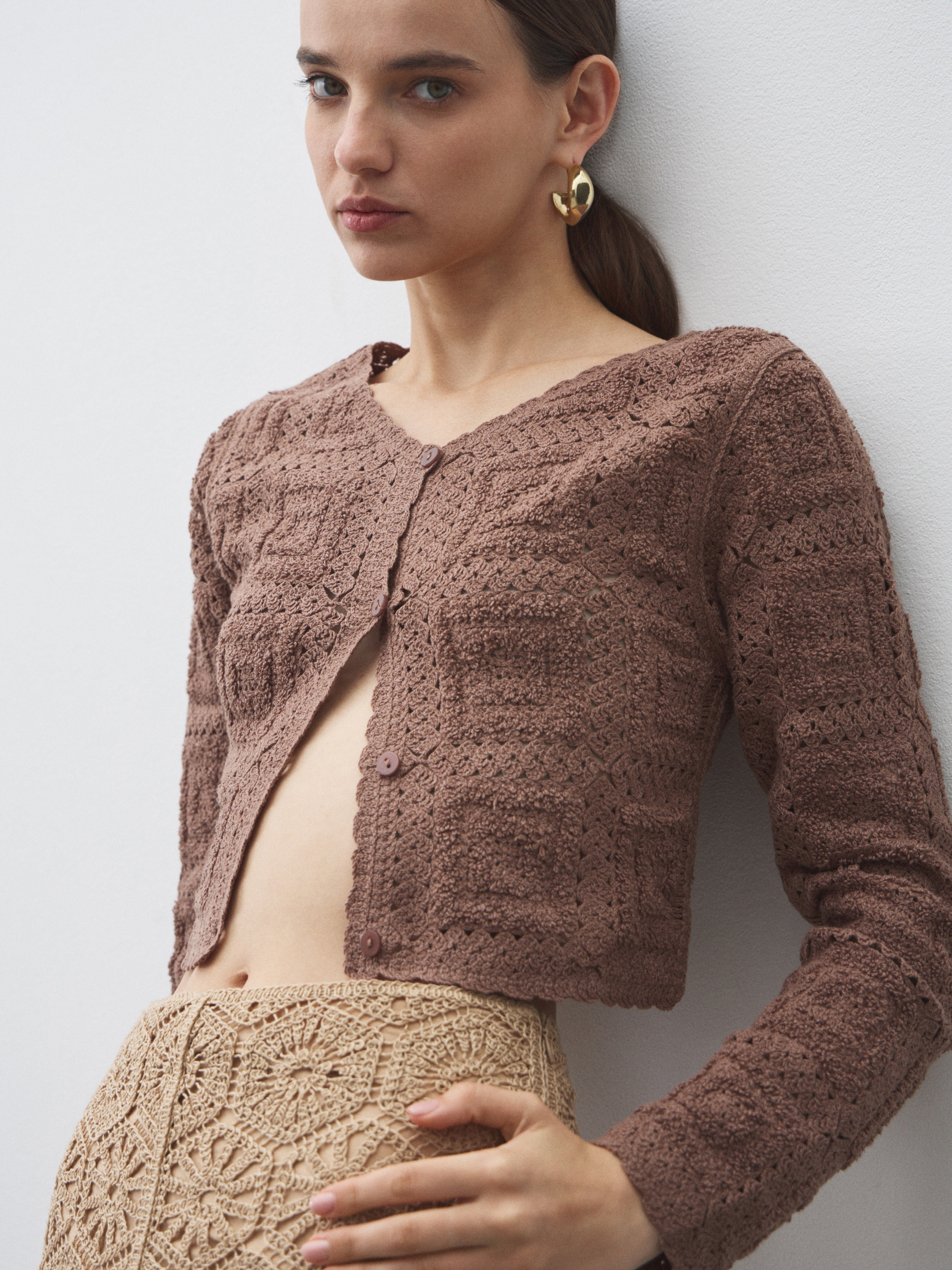 Женский кардиган кроше MAISON DAVID 4502854, серовато-коричневый