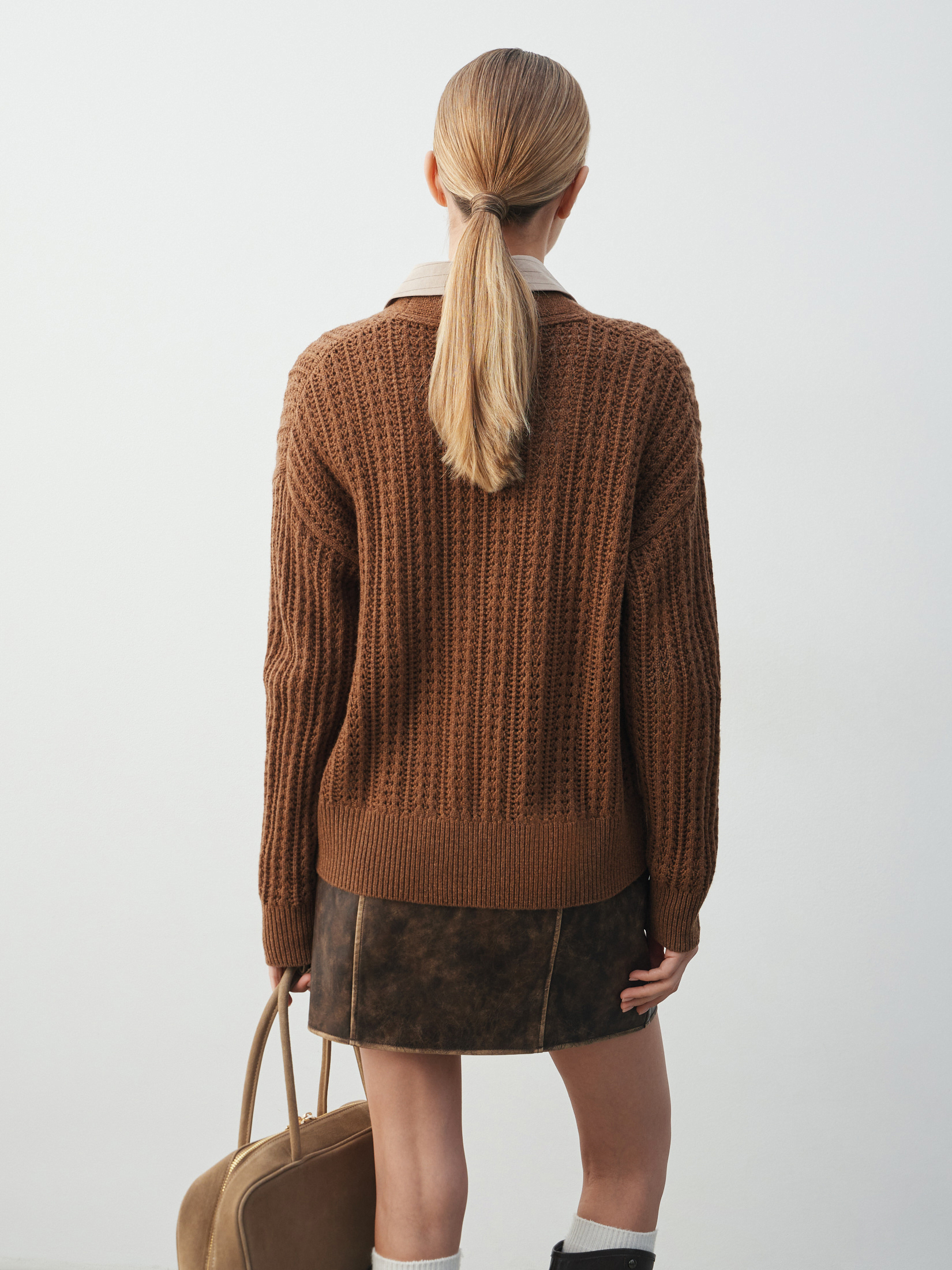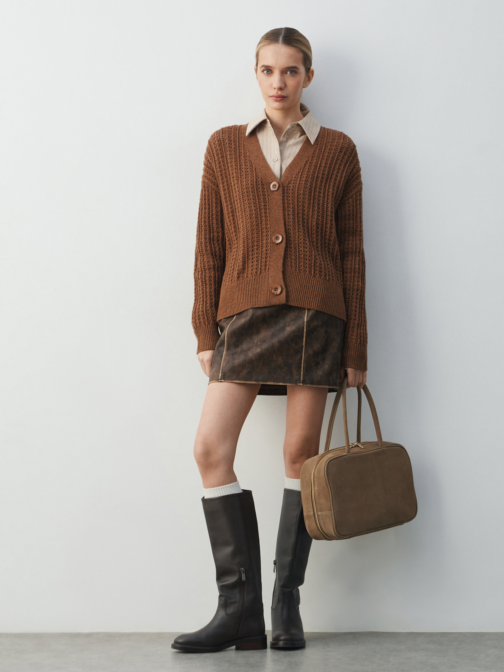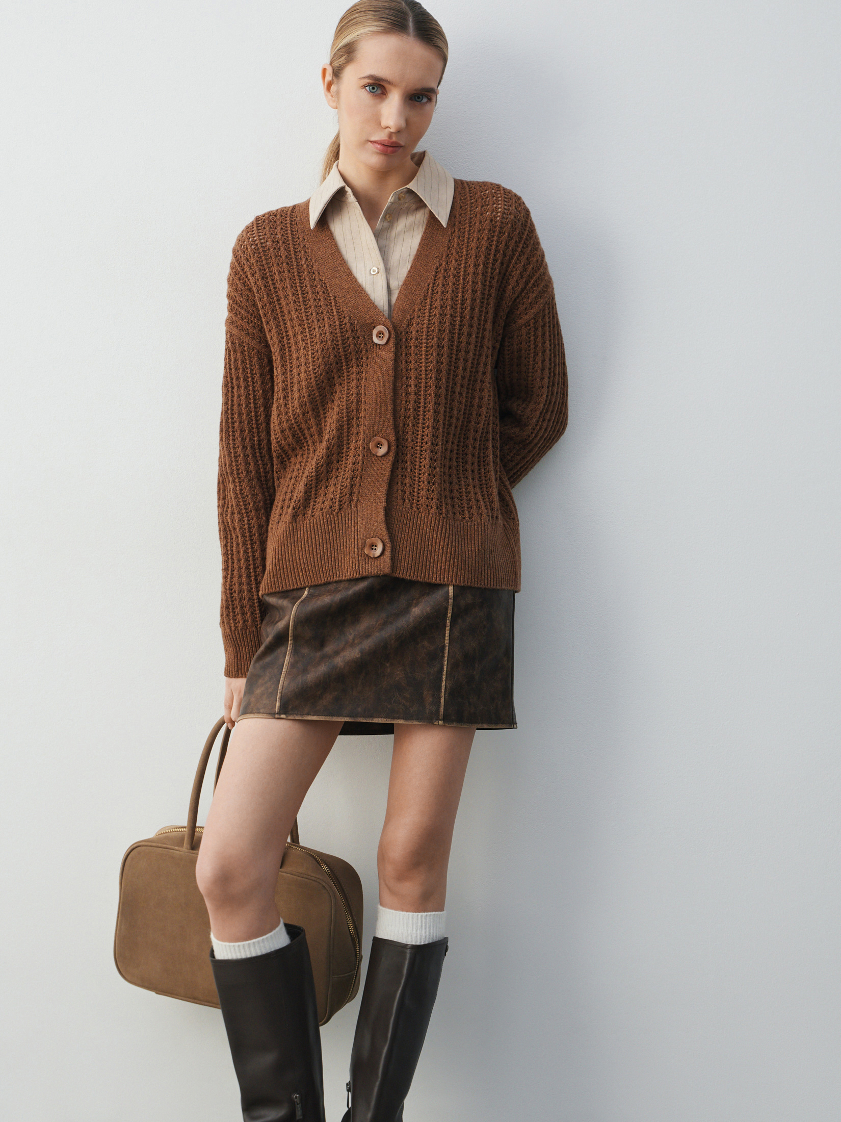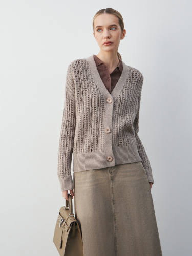 Женский кардиган кроше MAISON DAVID 4880118, пыльно-коричневый