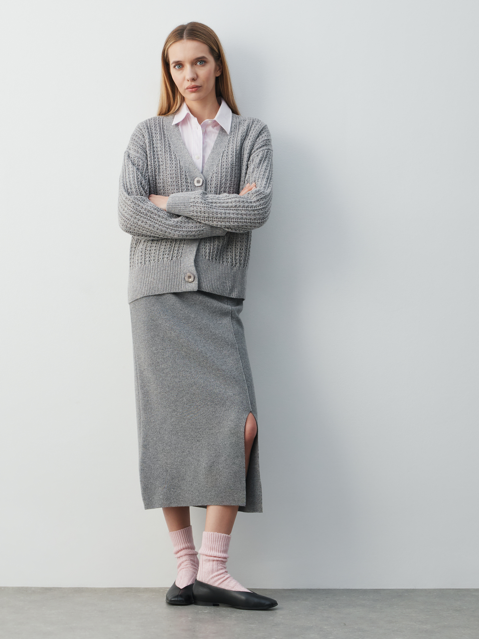 Женский кардиган кроше MAISON DAVID 4880125, светло-серый