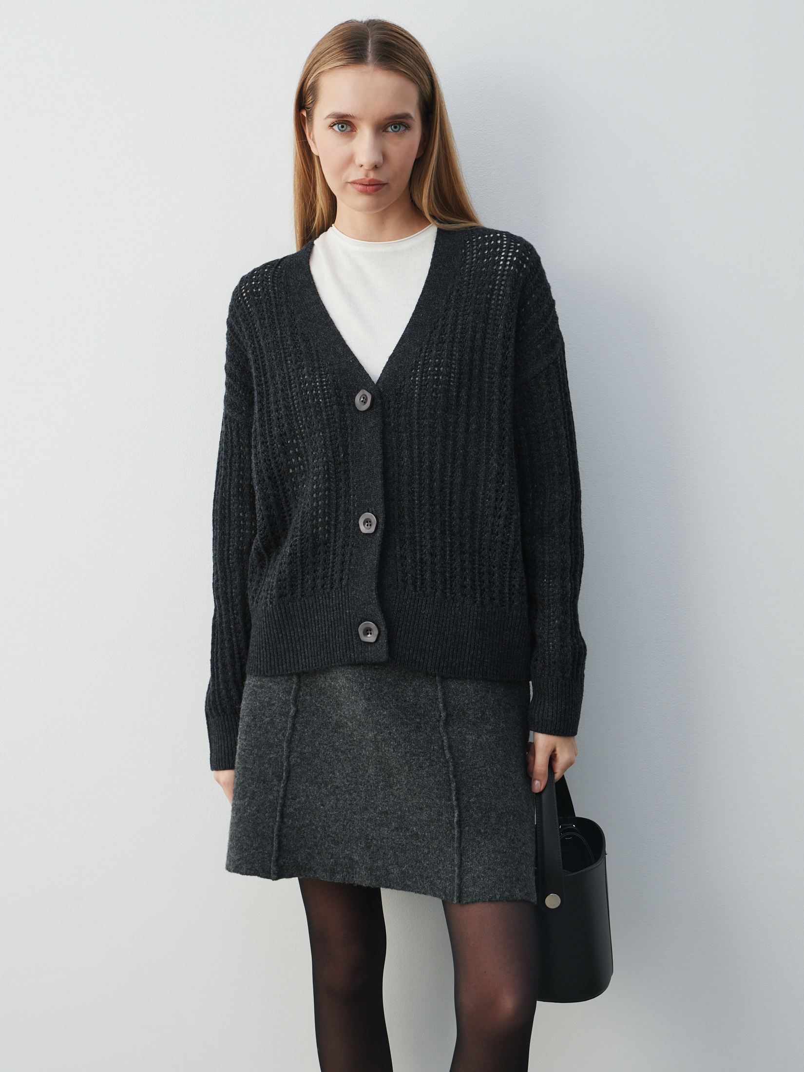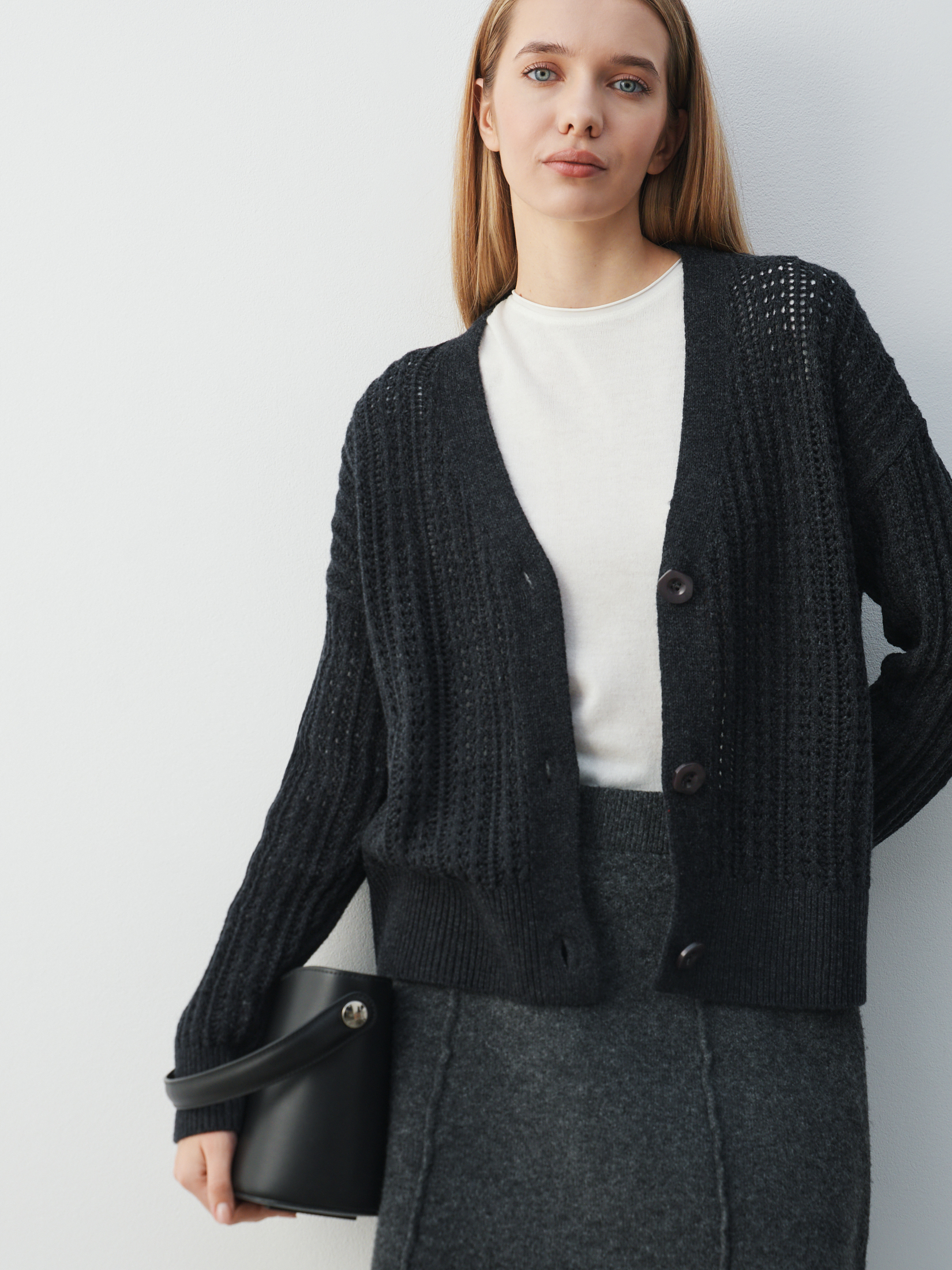 Женский кардиган кроше MAISON DAVID 4880153, темно-серый