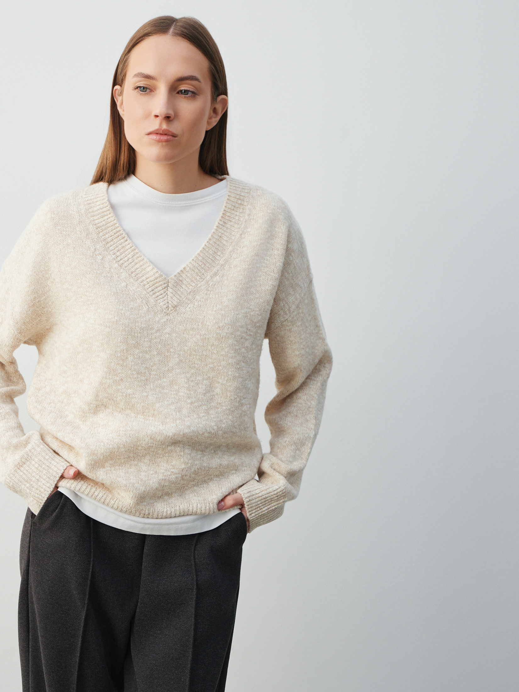 Женский пуловер MAISON DAVID 4879805, пыльно-бежевый