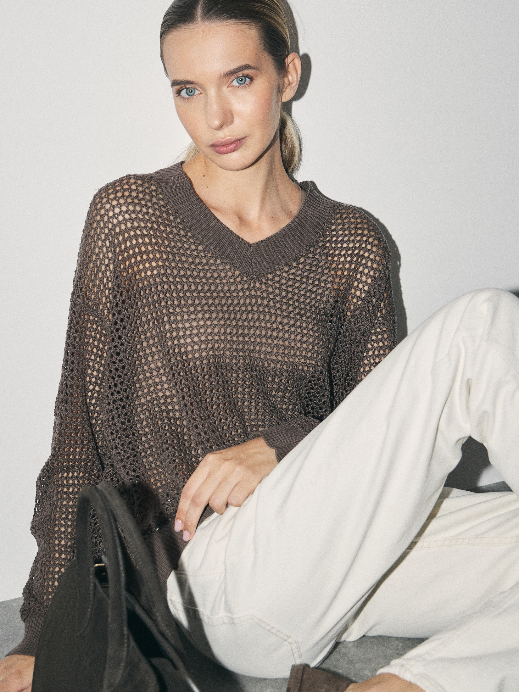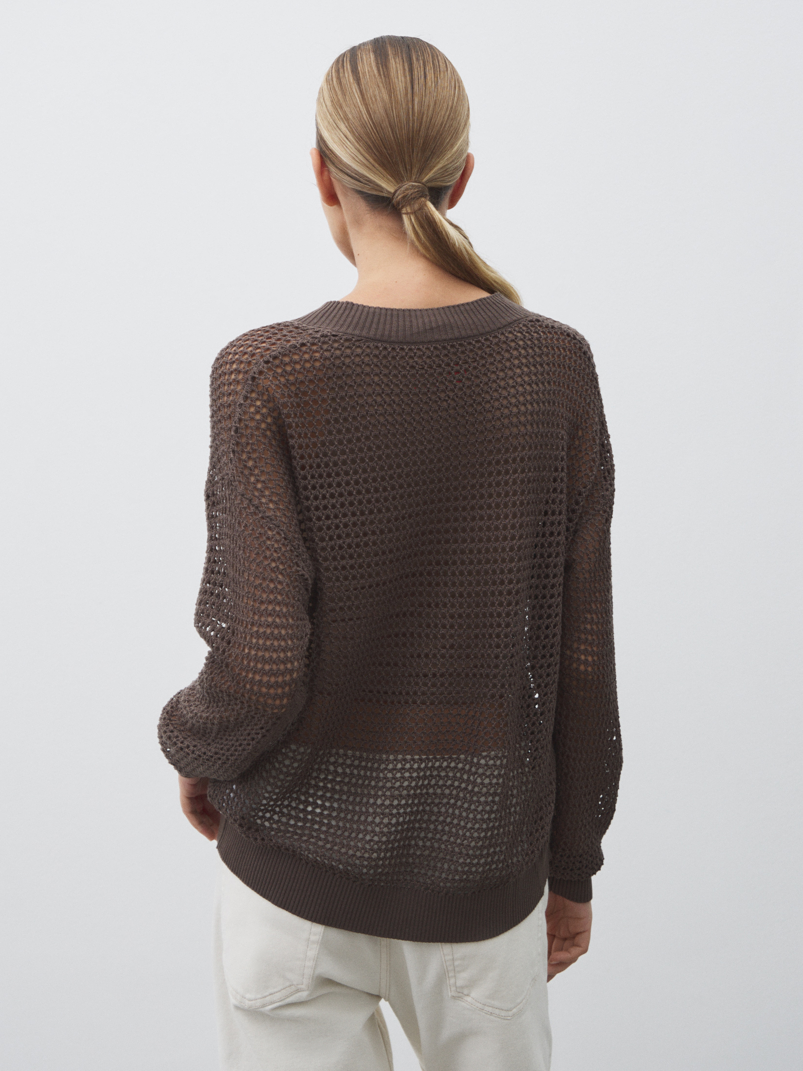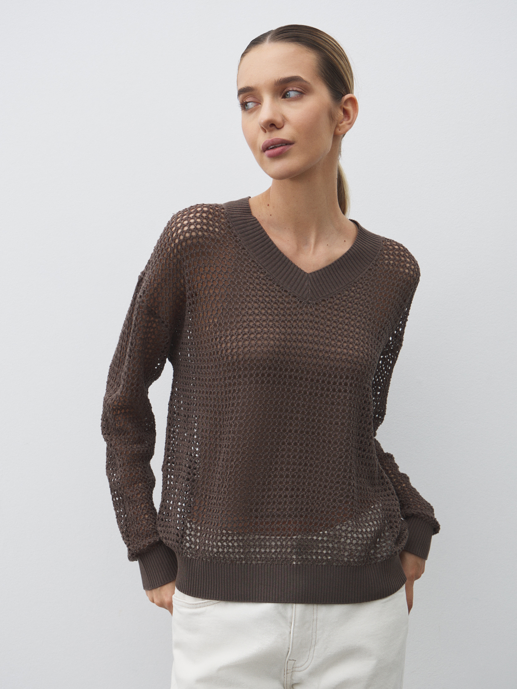 Женский пуловер кроше MAISON DAVID 4501242, серо-коричневый