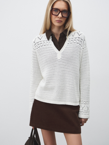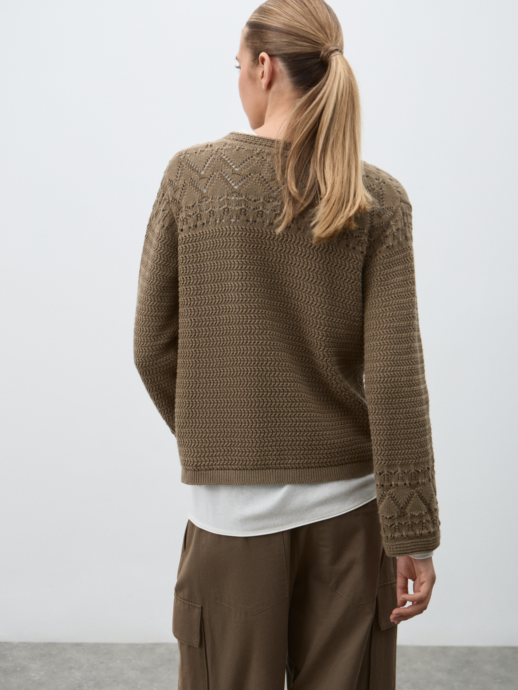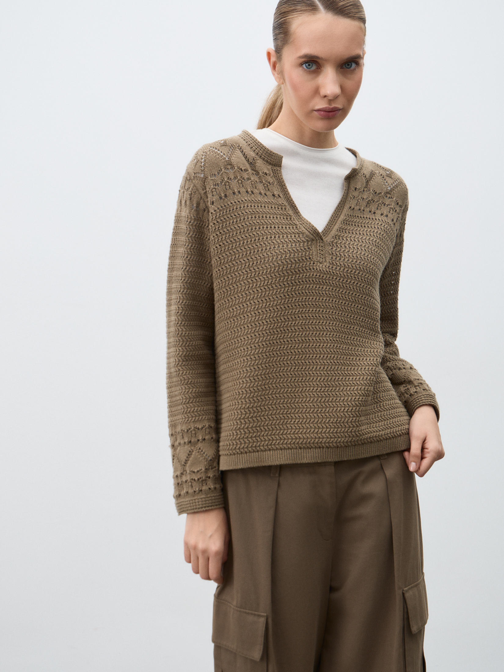 Женский пуловер кроше MAISON DAVID 4756921, зеленовато-коричневый