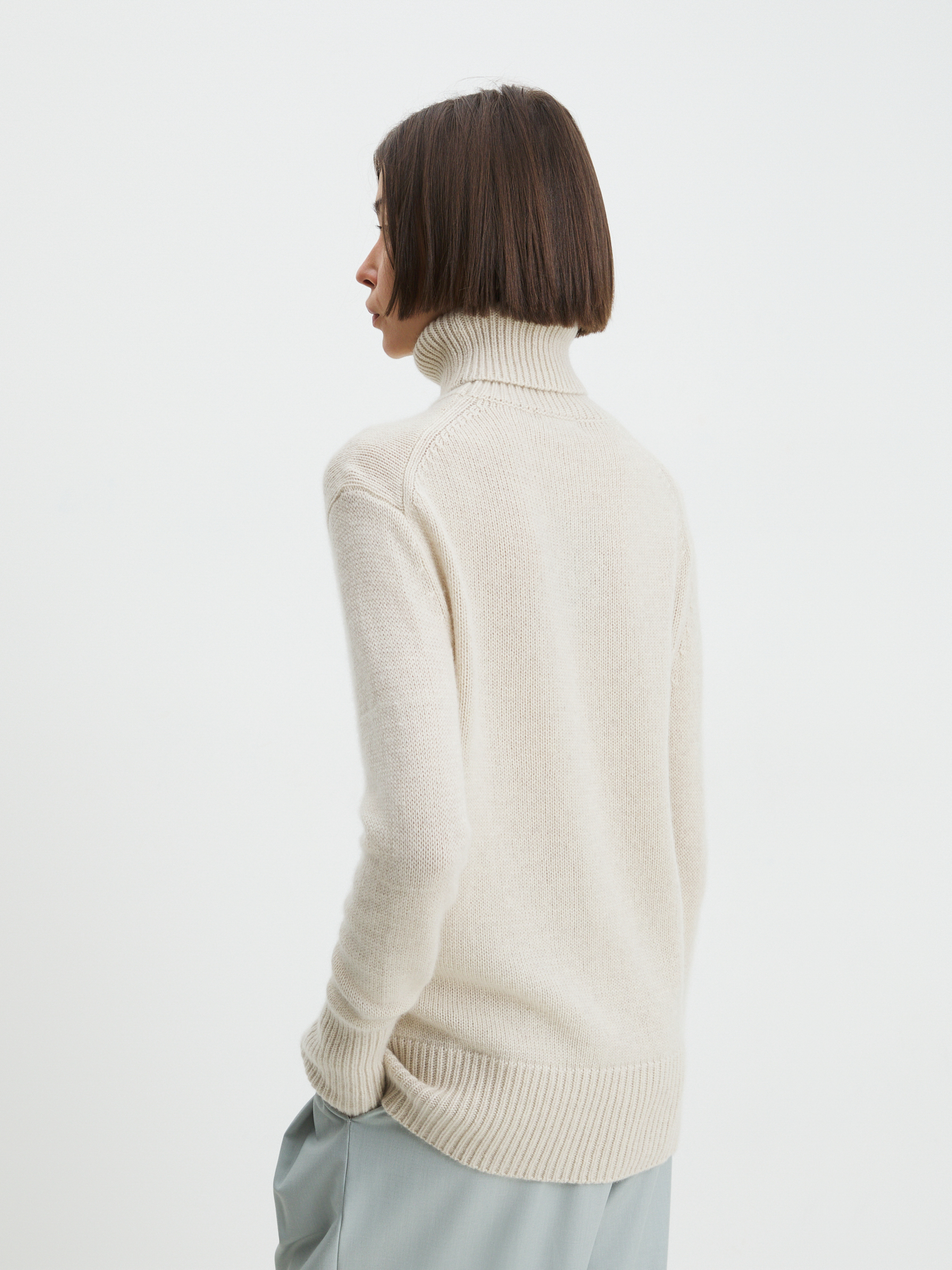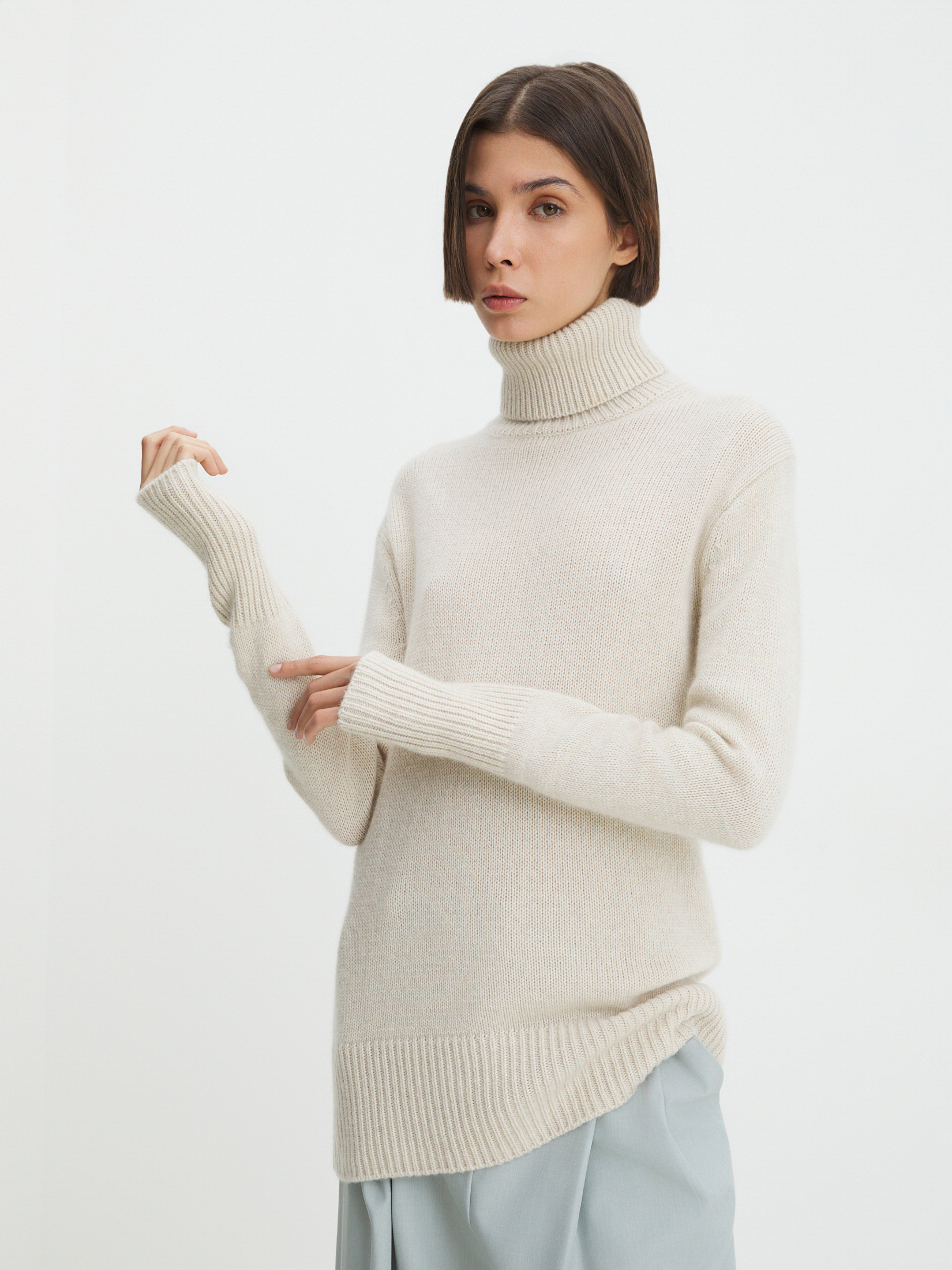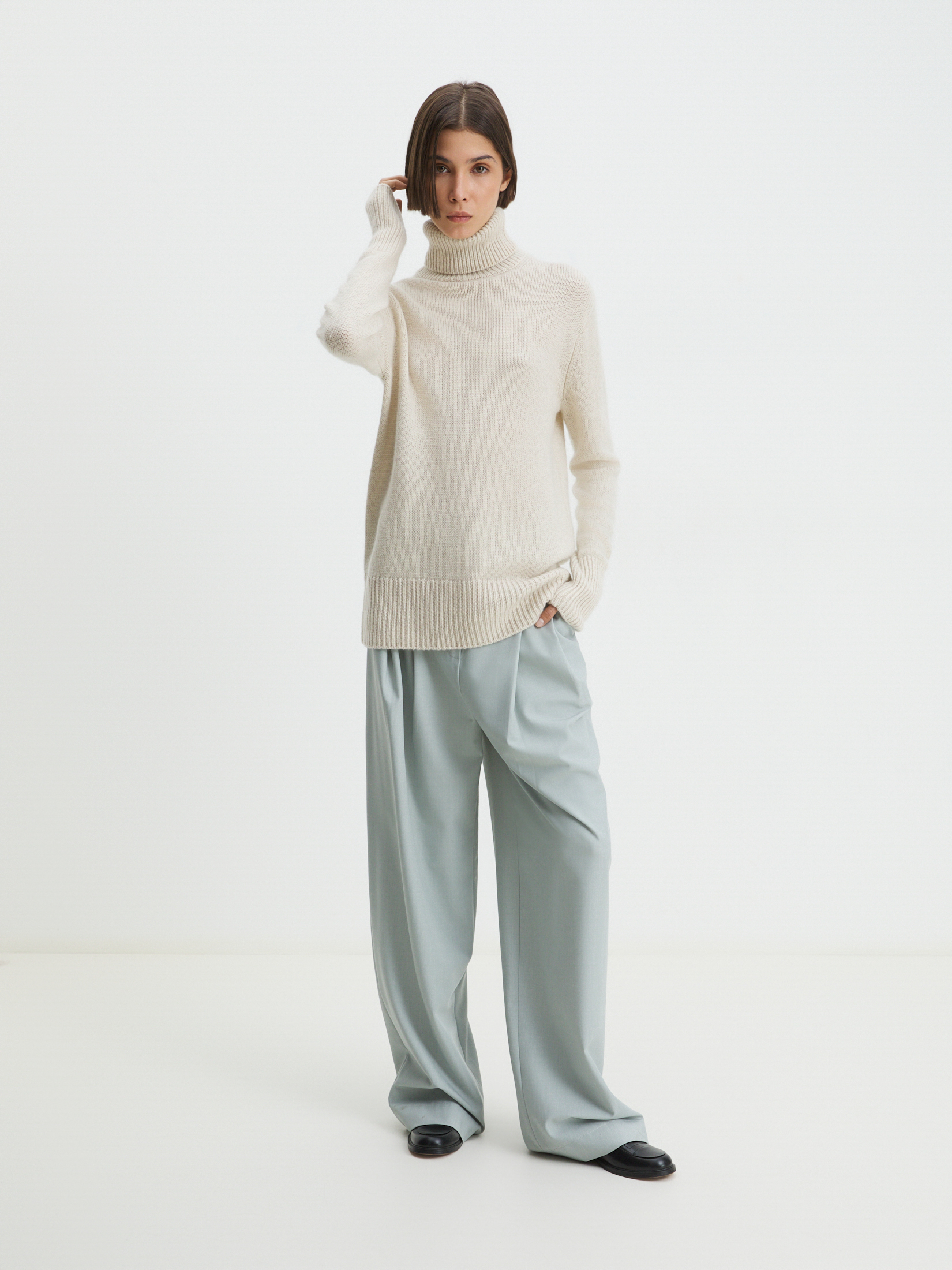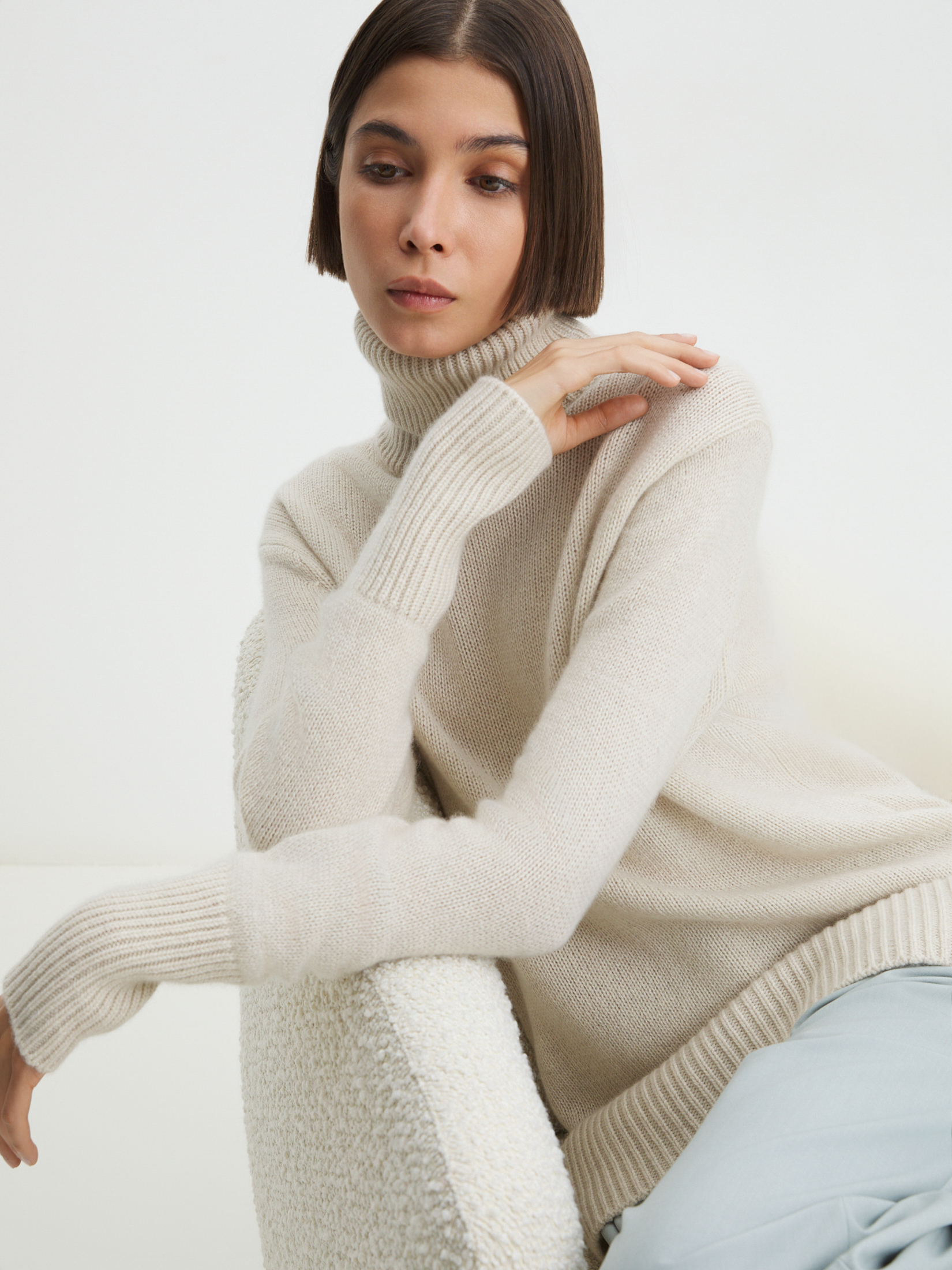 Модель создана из 100% кашемира – драгоценного материала из пухового подшерстка горных коз. Ограниченный в количестве и сложный в выработке кашемир ценят за его качественные характеристики и тактильность. Кашемир не колется и не вызывает аллергии, поэтому подходит людям с чувствительной кожей, которая не выдерживает контакта с шерстью. Кашемир превосходно сохраняет тепло и отводит влагу несмотря на невесомую структуру.