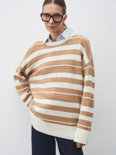 Модель создана из 100% шерсти мериноса – натурального материала, который получают от особой породы тонкорунных овец. Шерсть мериноса ценится за нежность, мягкость и эластичность. Натуральная шерсть пропускает воздух, не создавая парникового эффекта, поэтому ваша кожа останется сухой. В шерстяных вещах тепло, но не жарко. У волокон мериноса есть завитки, похожие на пружинки. Грязь не проникает в них, а остается снаружи, благодаря чему шерстяные вещи долго остаются свежими.