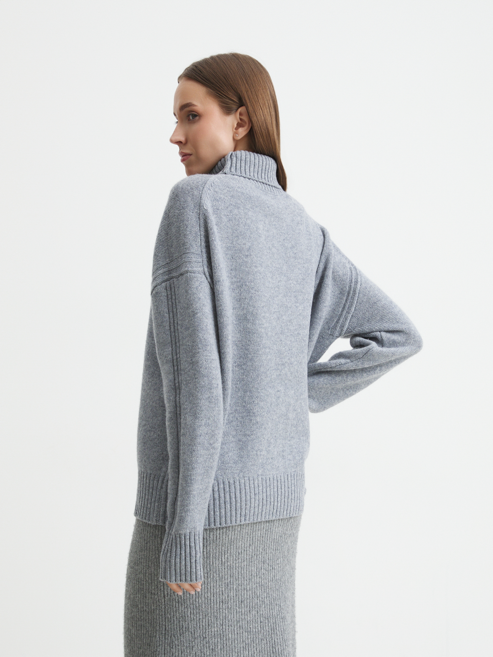 Модель создана из 100% шерсти мериноса – натурального материала, который получают от особой породы тонкорунных овец. Шерсть мериноса ценится за нежность, мягкость и эластичность. Натуральная шерсть пропускает воздух, не создавая парникового эффекта, поэтому ваша кожа останется сухой. В шерстяных вещах тепло, но не жарко. У волокон мериноса есть завитки, похожие на пружинки. Грязь не проникает в них, а остается снаружи, благодаря чему шерстяные вещи долго остаются свежими.