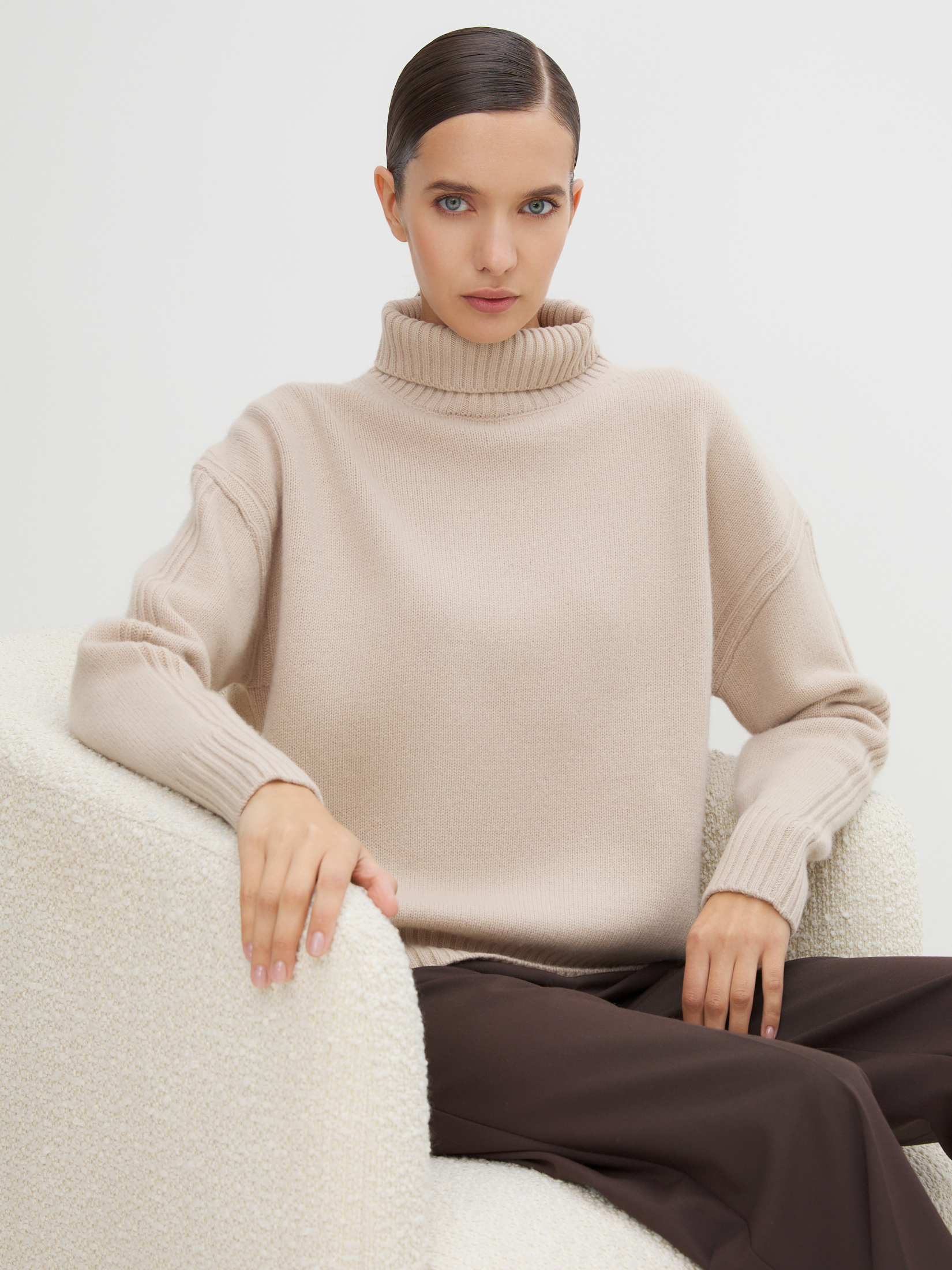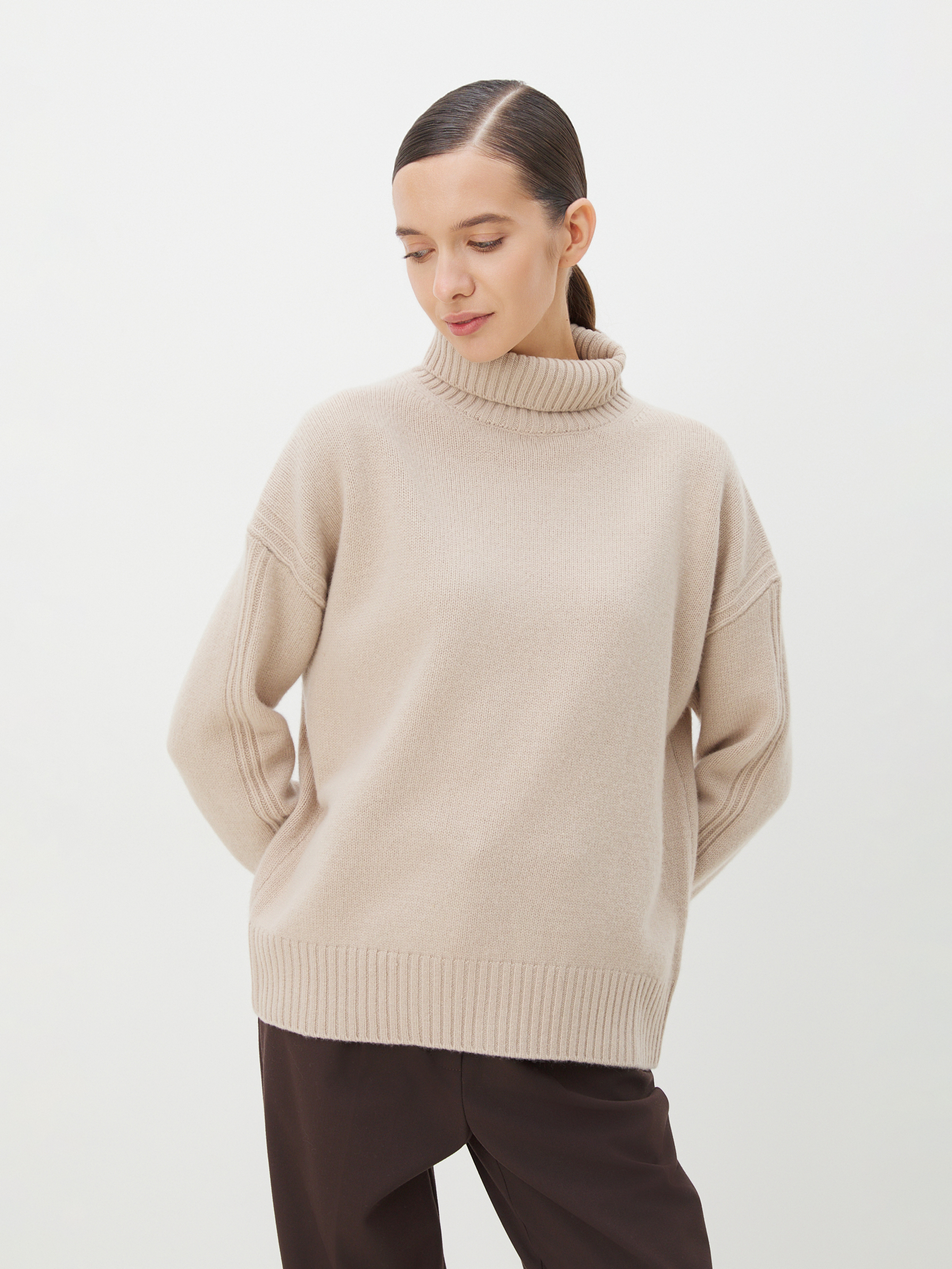 Модель создана из 100% шерсти мериноса – натурального материала, который получают от особой породы тонкорунных овец. Шерсть мериноса ценится за нежность, мягкость и эластичность. Натуральная шерсть пропускает воздух, не создавая парникового эффекта, поэтому ваша кожа останется сухой. В шерстяных вещах тепло, но не жарко. У волокон мериноса есть завитки, похожие на пружинки. Грязь не проникает в них, а остается снаружи, благодаря чему шерстяные вещи долго остаются свежими.