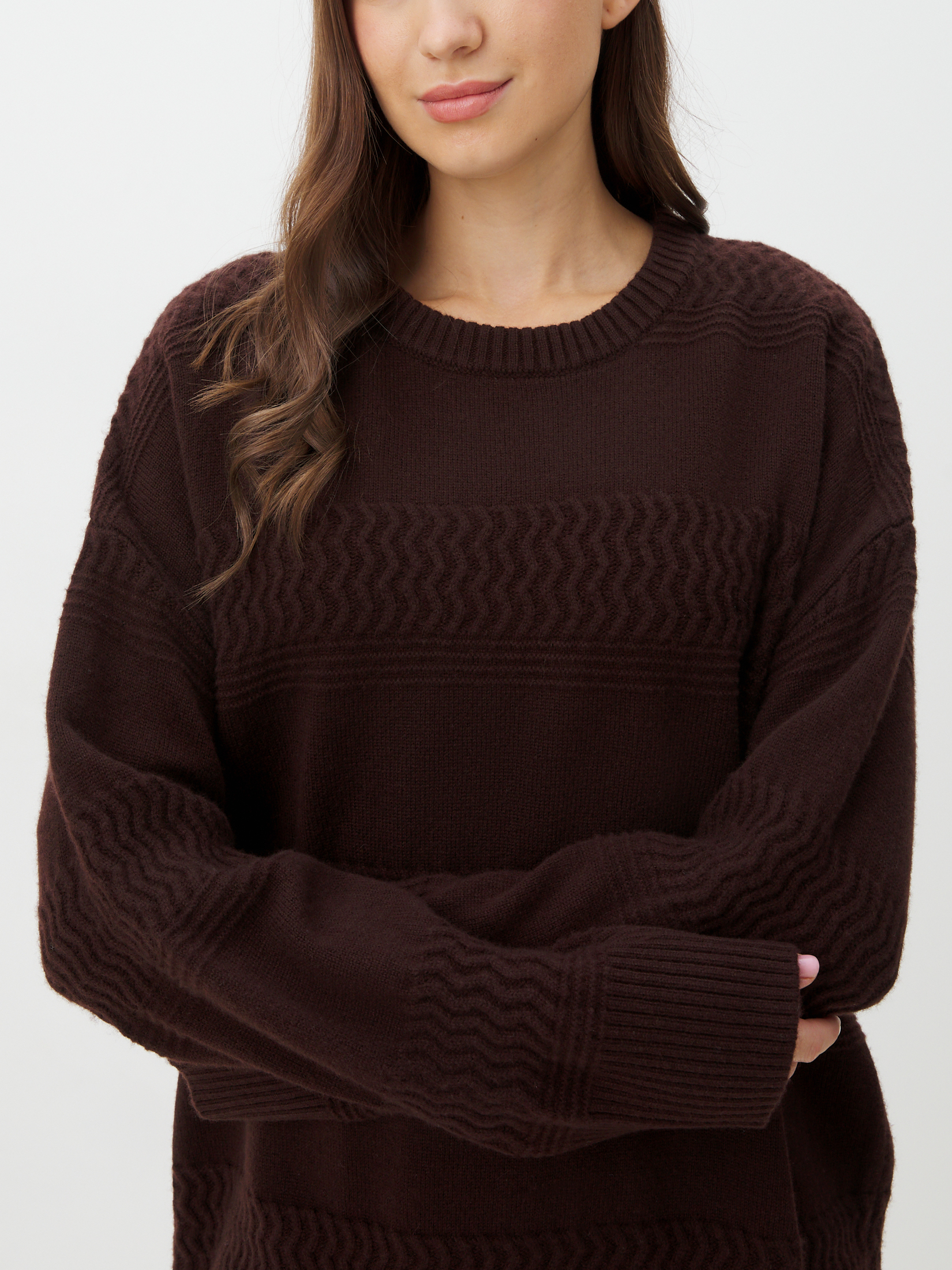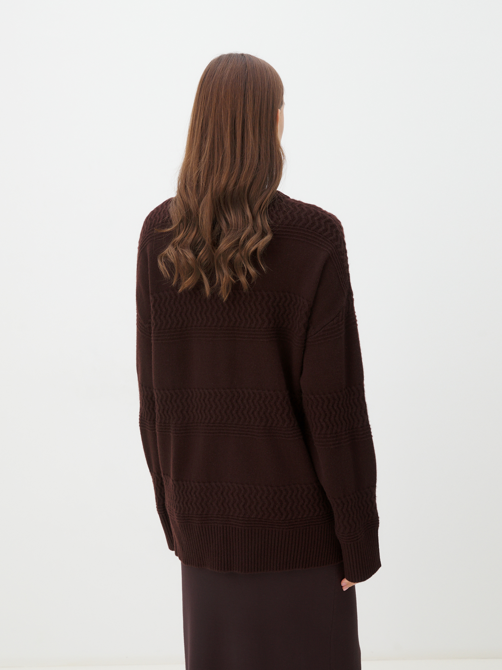 Модель создана из 100% шерсти мериноса – натурального материала, который получают от особой породы тонкорунных овец. Шерсть мериноса ценится за нежность, мягкость и эластичность. Натуральная шерсть пропускает воздух, не создавая парникового эффекта, поэтому ваша кожа останется сухой. В шерстяных вещах тепло, но не жарко. У волокон мериноса есть завитки, похожие на пружинки. Грязь не проникает в них, а остается снаружи, благодаря чему шерстяные вещи долго остаются свежими.