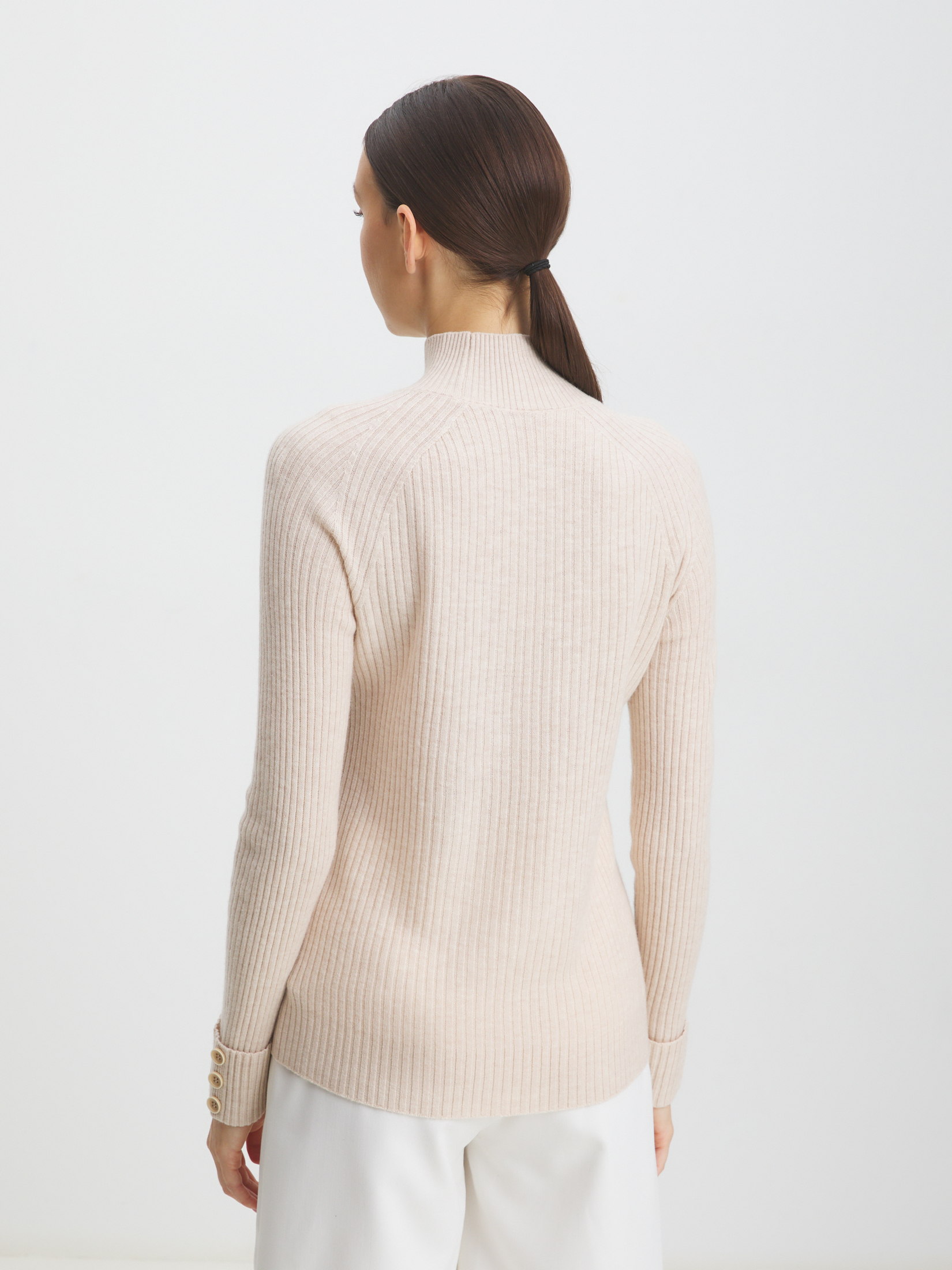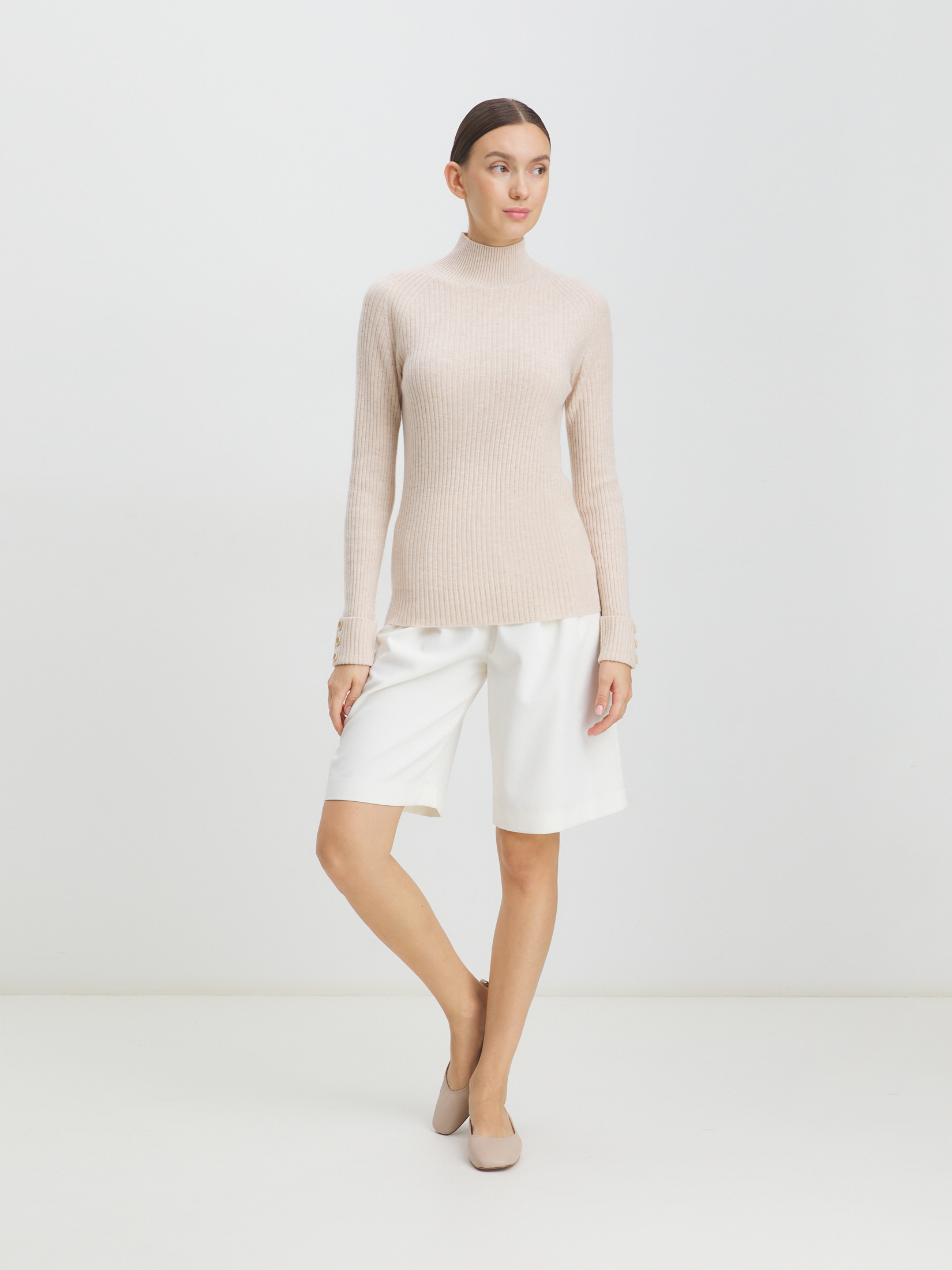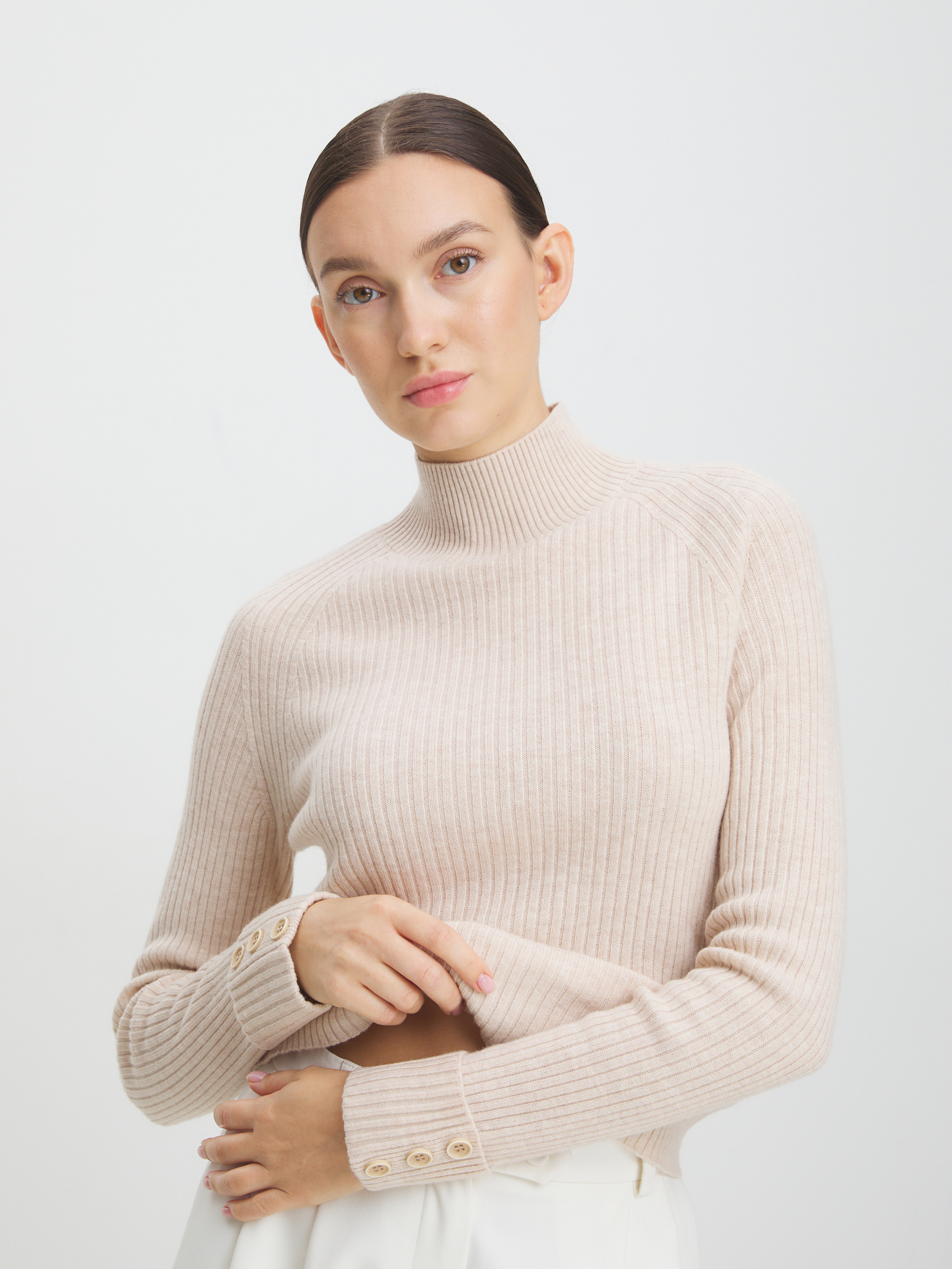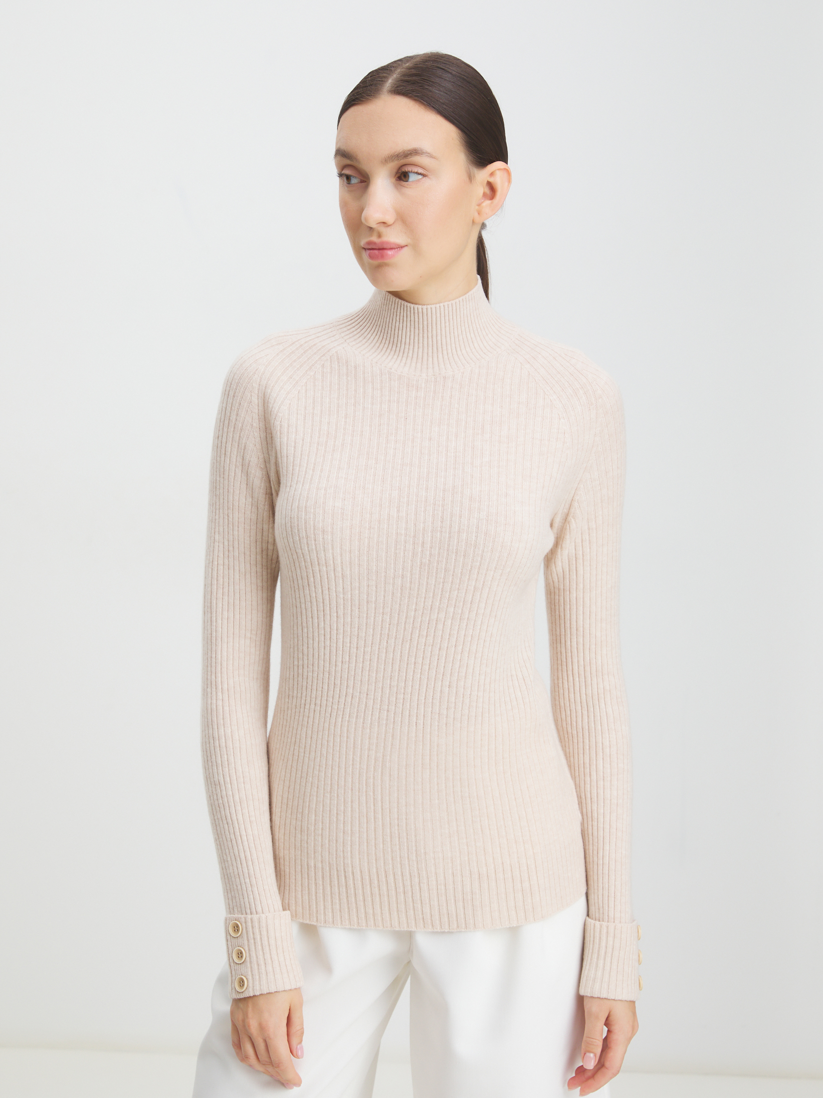 Модель создана из 100% шерсти мериноса – натурального материала, который получают от особой породы тонкорунных овец. Шерсть мериноса ценится за нежность, мягкость и эластичность. Натуральная шерсть пропускает воздух, не создавая парникового эффекта, поэтому ваша кожа останется сухой. В шерстяных вещах тепло, но не жарко. У волокон мериноса есть завитки, похожие на пружинки. Грязь не проникает в них, а остается снаружи, благодаря чему шерстяные вещи долго остаются свежими.