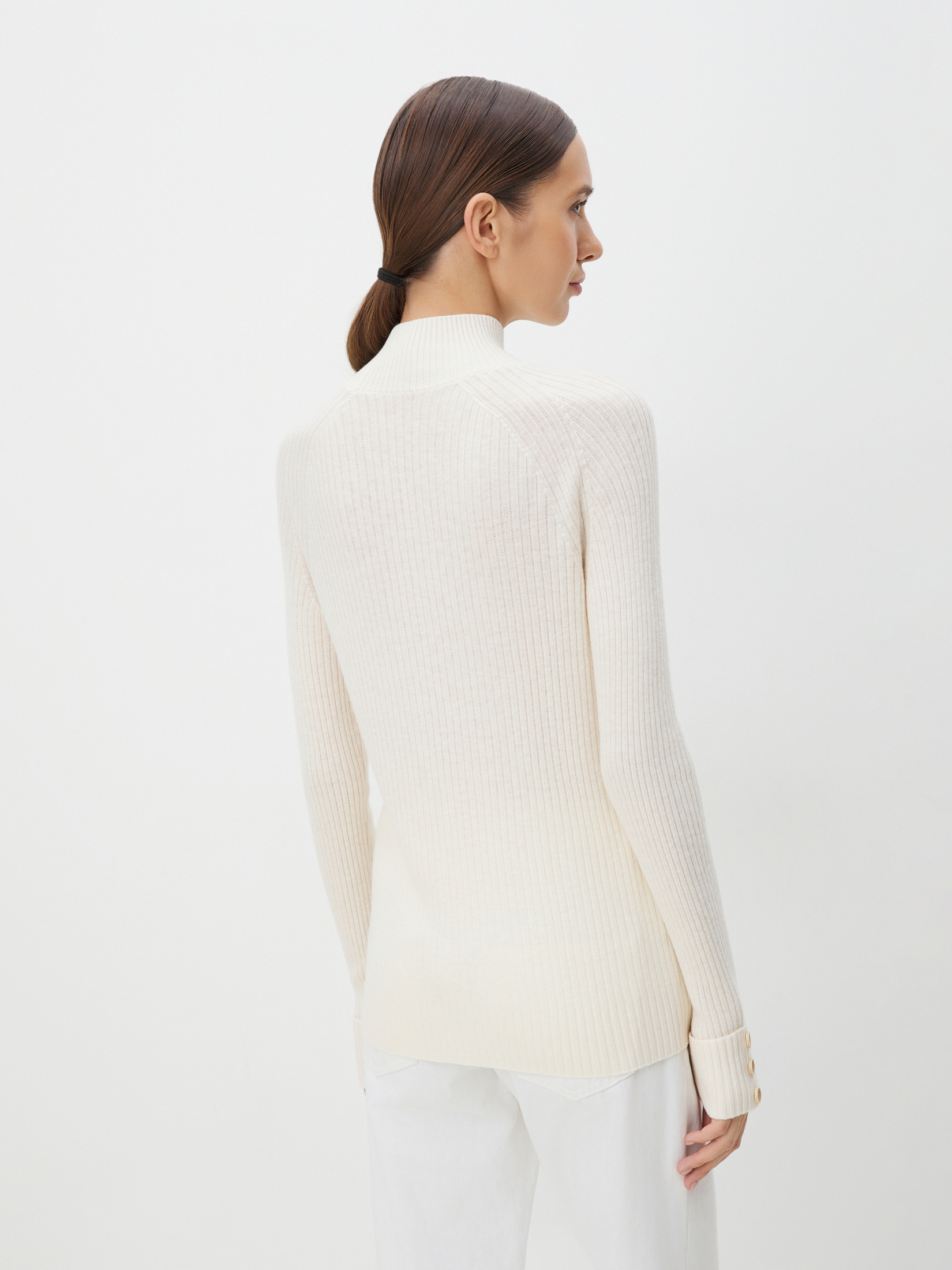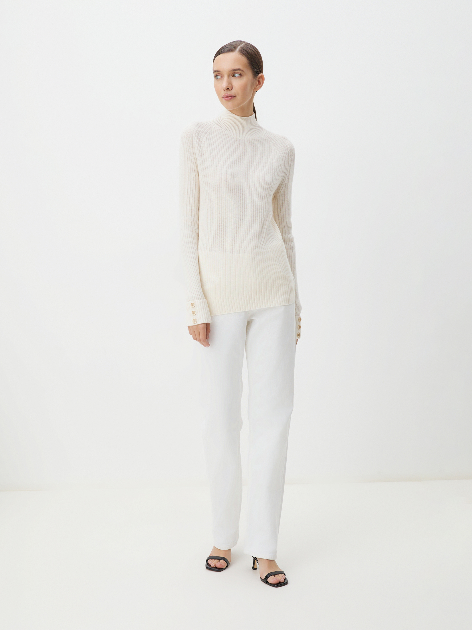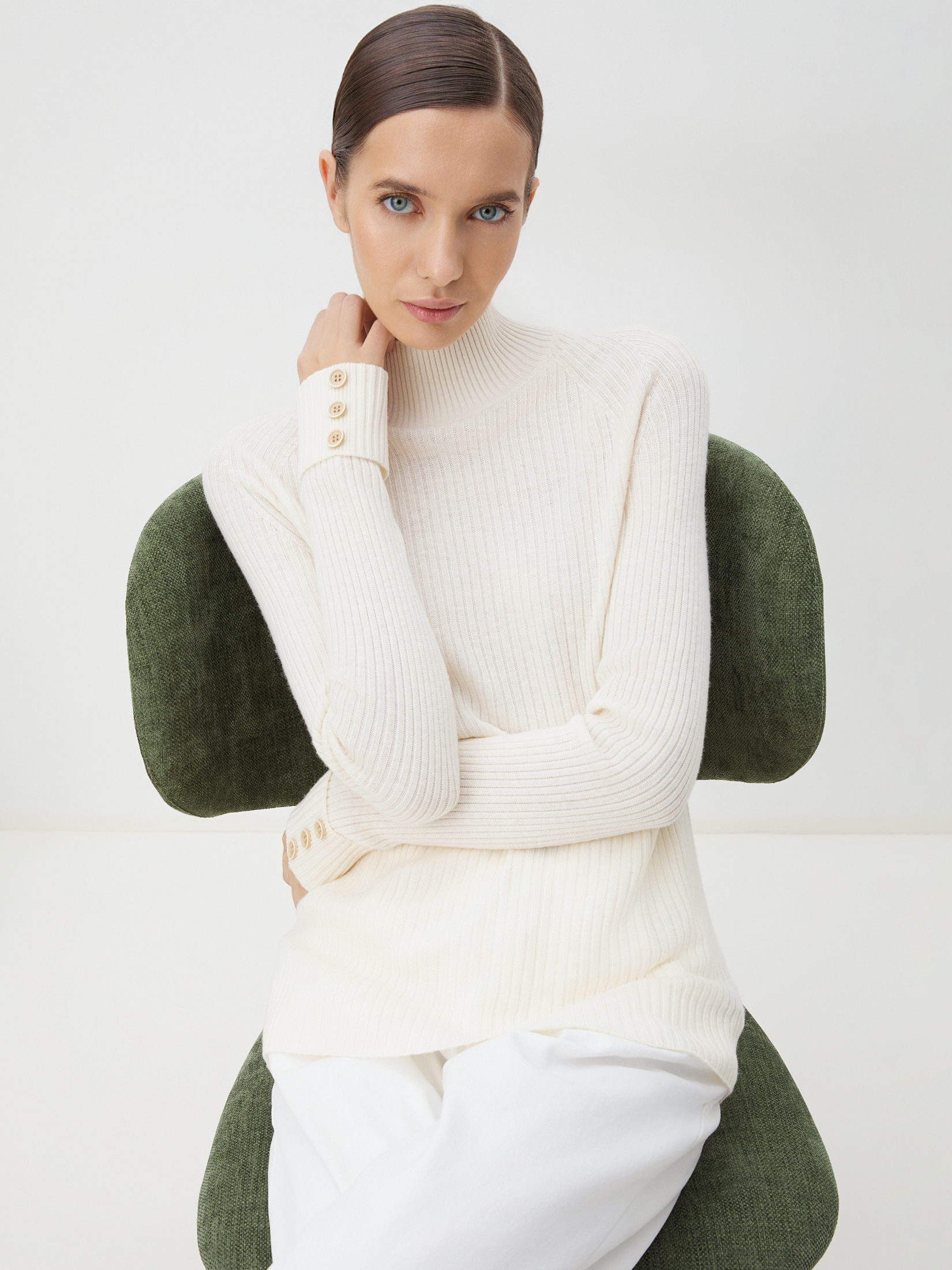 Модель создана из 100% шерсти мериноса – натурального материала, который получают от особой породы тонкорунных овец. Шерсть мериноса ценится за нежность, мягкость и эластичность. Натуральная шерсть пропускает воздух, не создавая парникового эффекта, поэтому ваша кожа останется сухой. В шерстяных вещах тепло, но не жарко. У волокон мериноса есть завитки, похожие на пружинки. Грязь не проникает в них, а остается снаружи, благодаря чему шерстяные вещи долго остаются свежими.