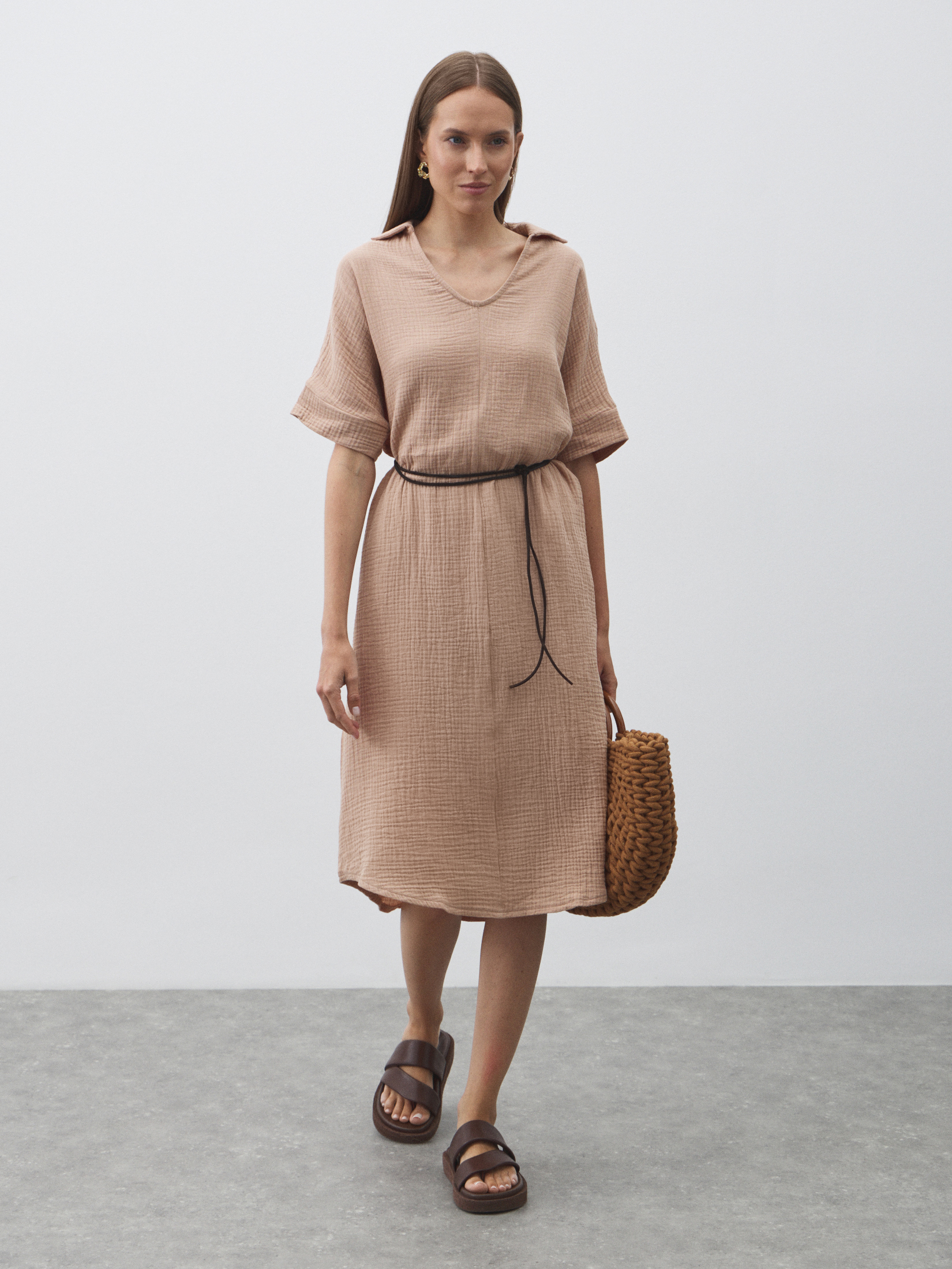 Женское платье из муслина MAISON DAVID 4835846, темно-бежевый