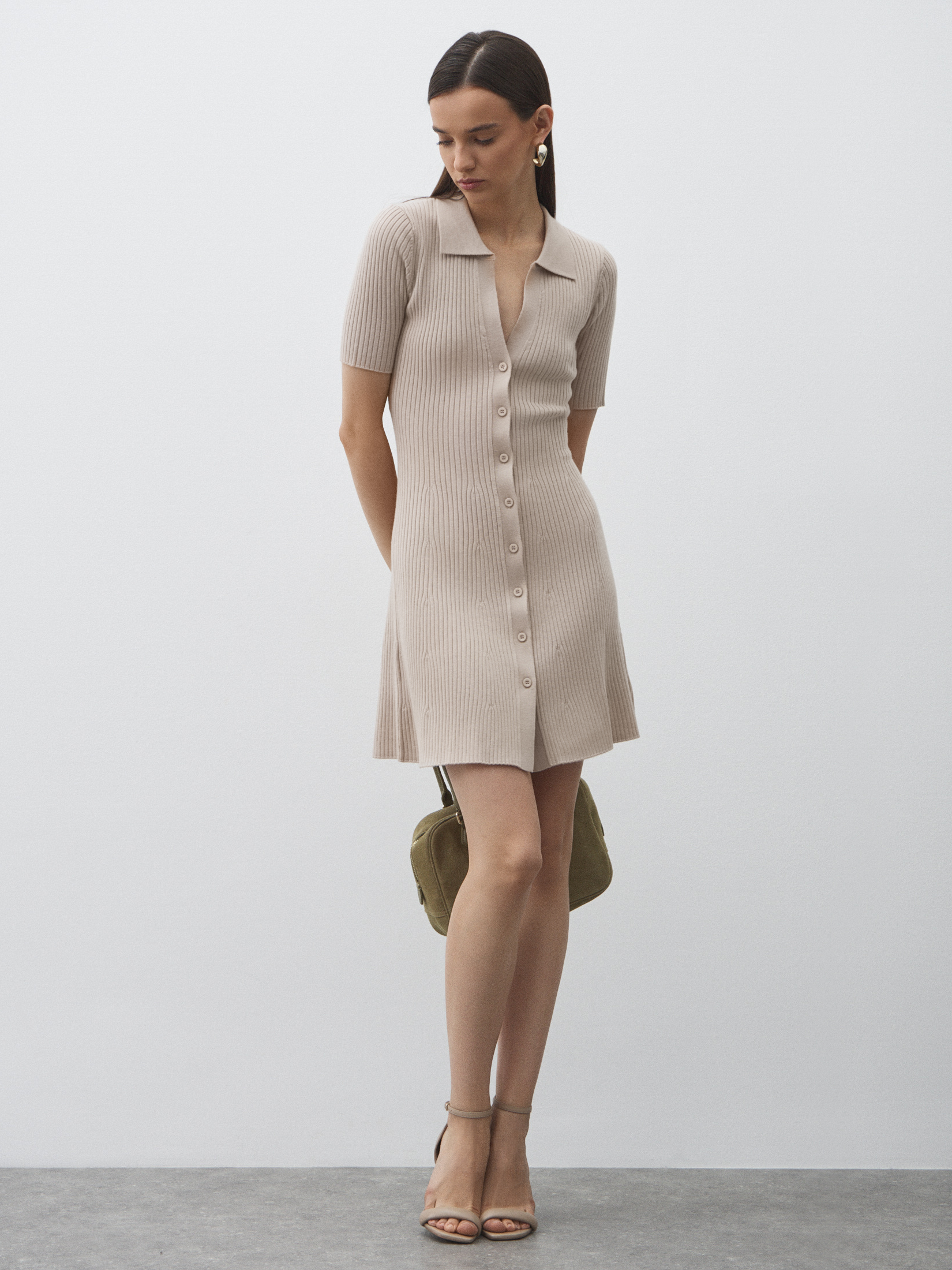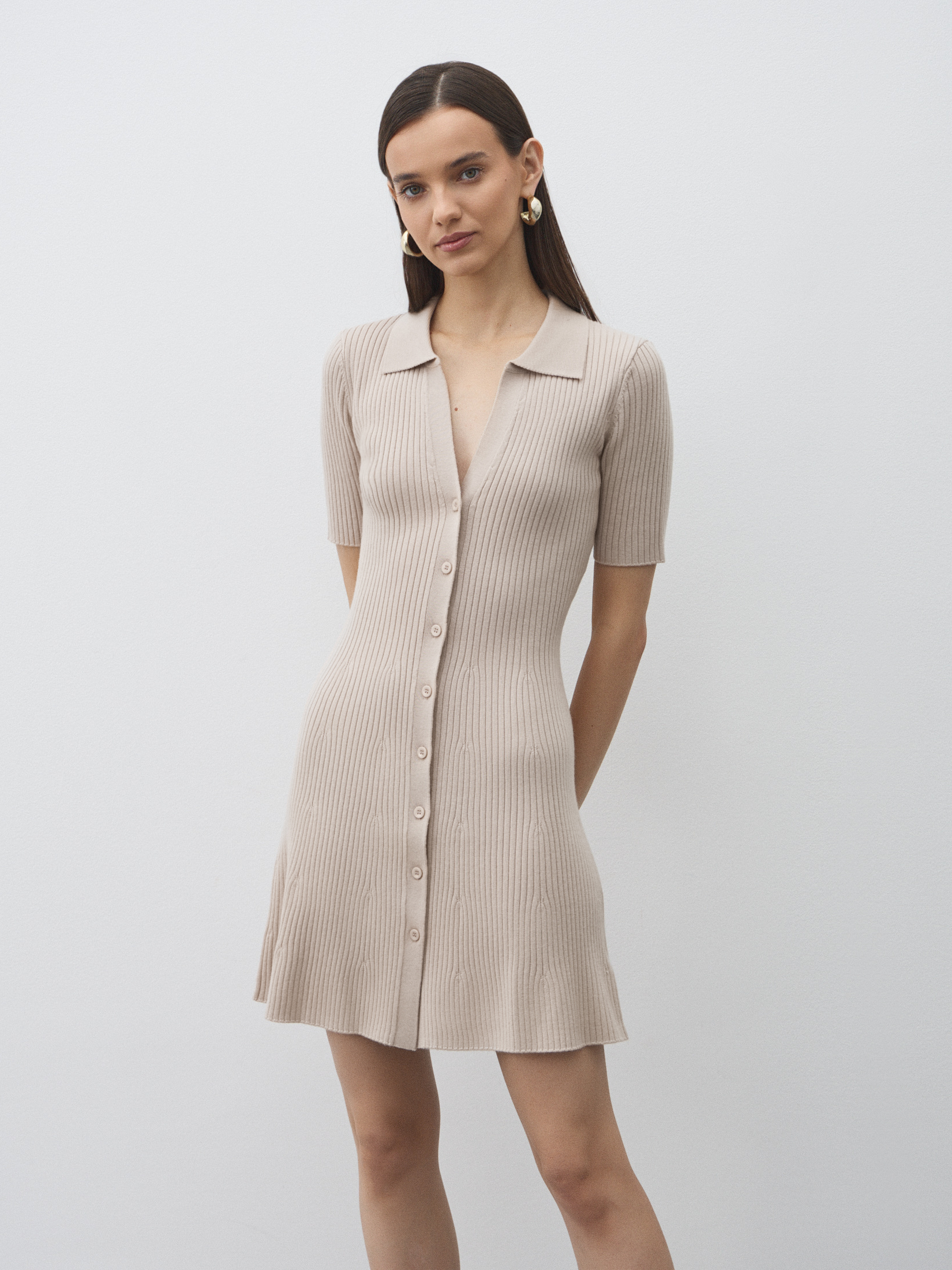 Женское платье-рубашка MAISON DAVID 4507128, бежевато-серый