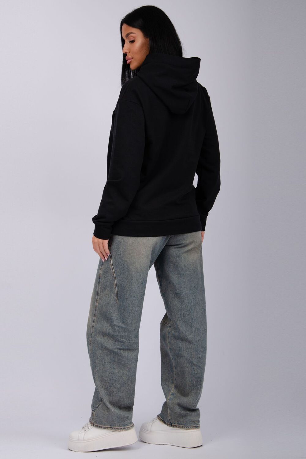 Худи изготовлен из качественного материала футер 2‑х нитка с начесом, который обеспечивает мягкость и комфорт при ношении. Он идеально подходит для холодной погоды и даже для зимних прогулок. Этот материал не только сохраняет тепло, но и дышит, позволяя вашей коже оставаться сухой и комфортной в течение всего дня. Цвет: черный; Материал: футер 2-х нитка с начесом;футер 2-х нитка с начесом; Состав: 95% хлопок, 5% полиэстер.